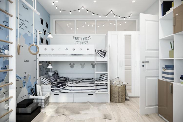 El diseño para niños en el estilo escandinavo se puede ver a continuación en la foto, puede combinar varias ideas interesantes. Vea fotos de interiores y seguramente recogerá algo adecuado para usted y su hijo.