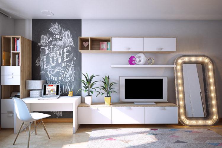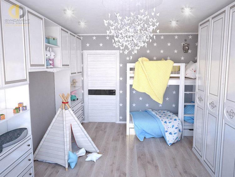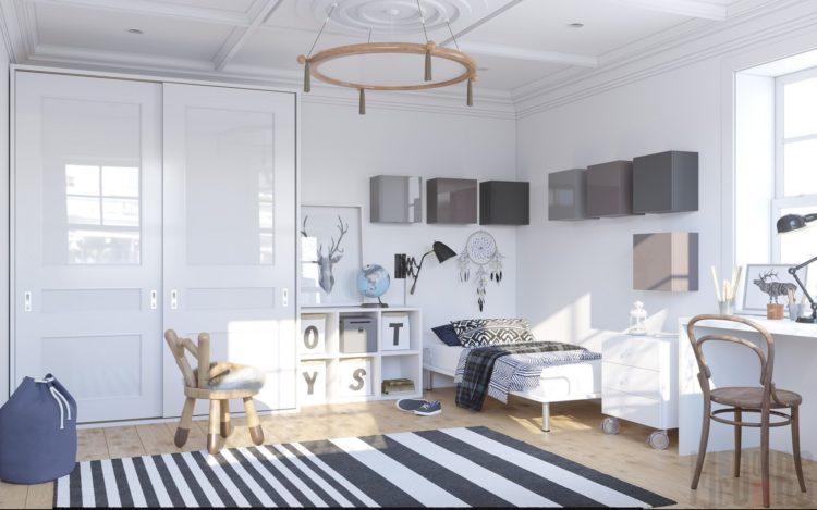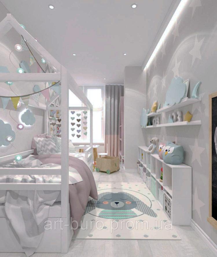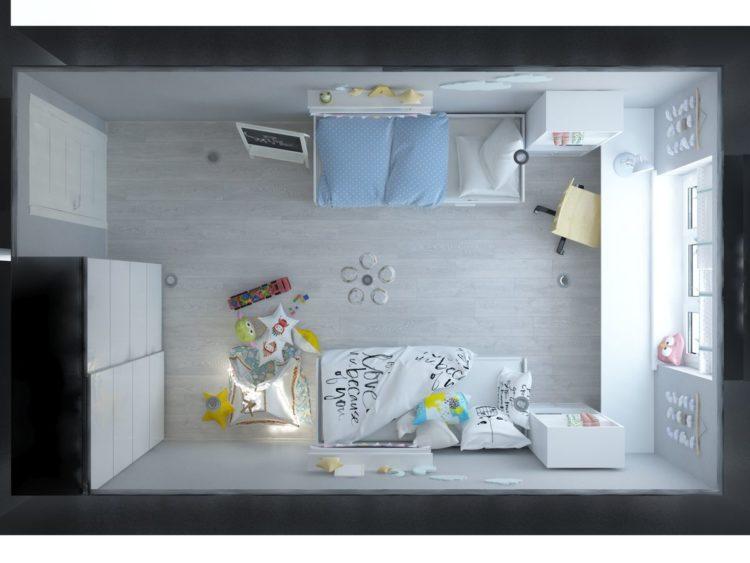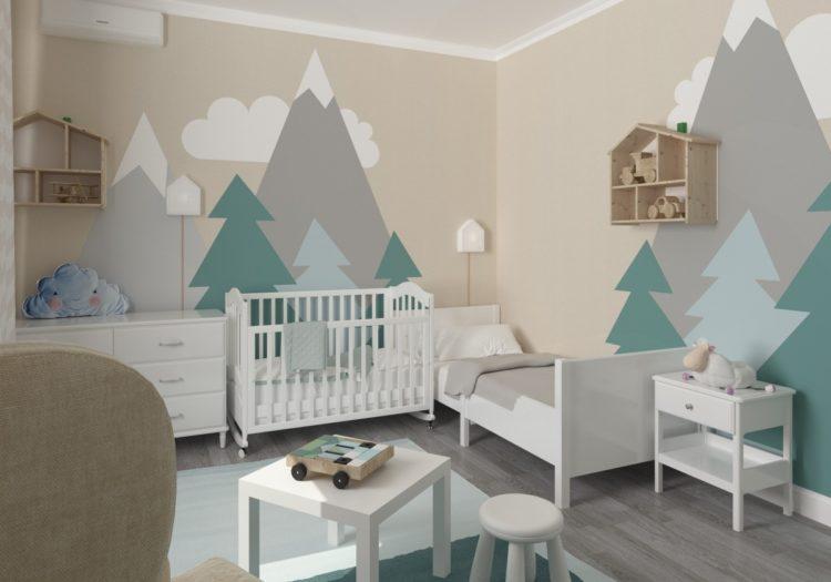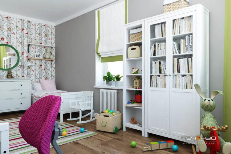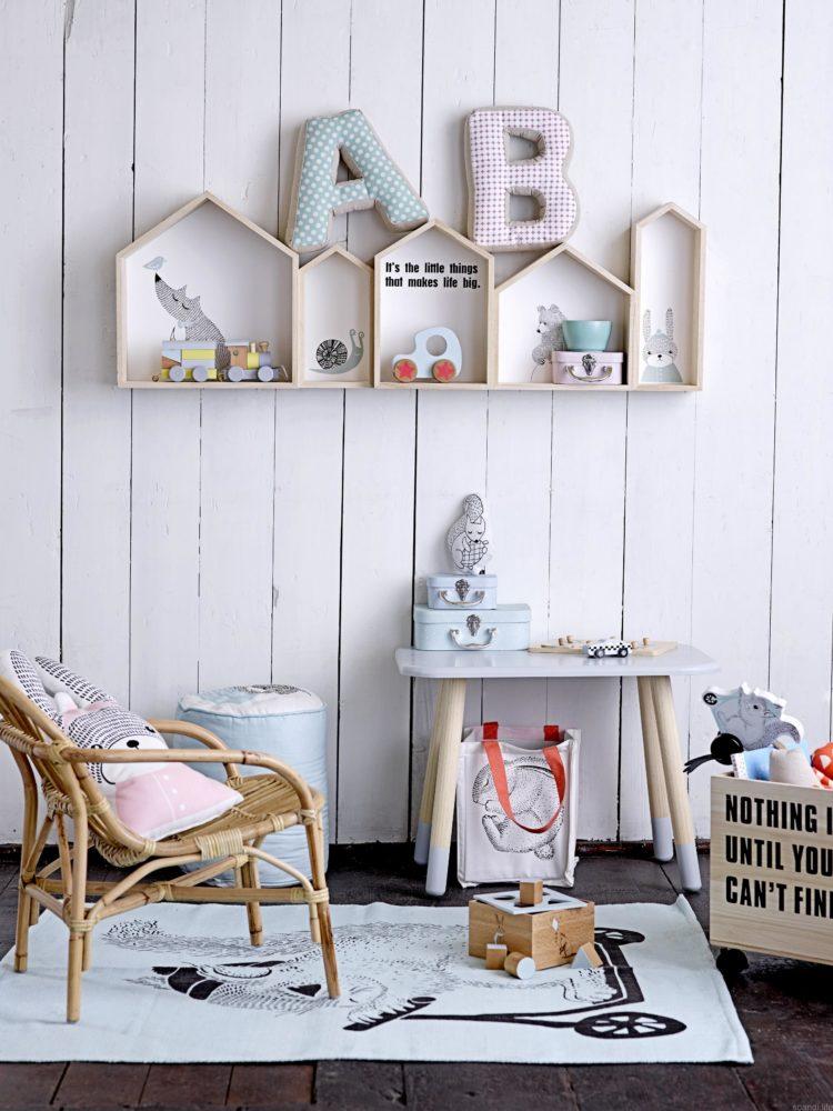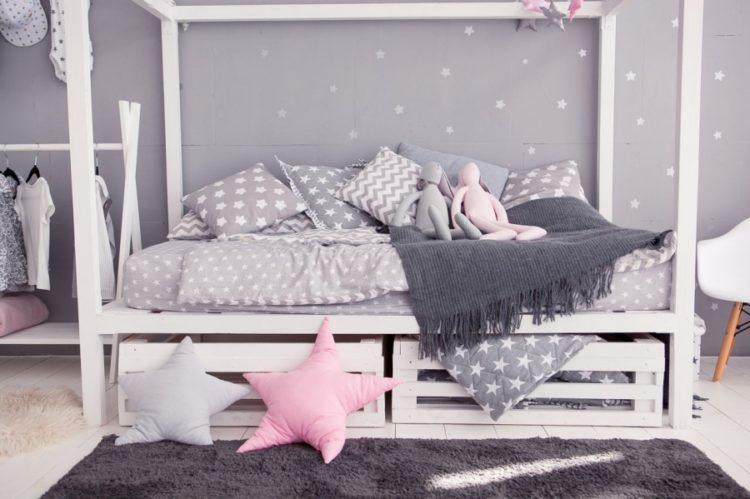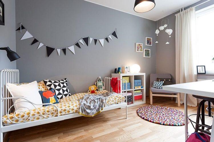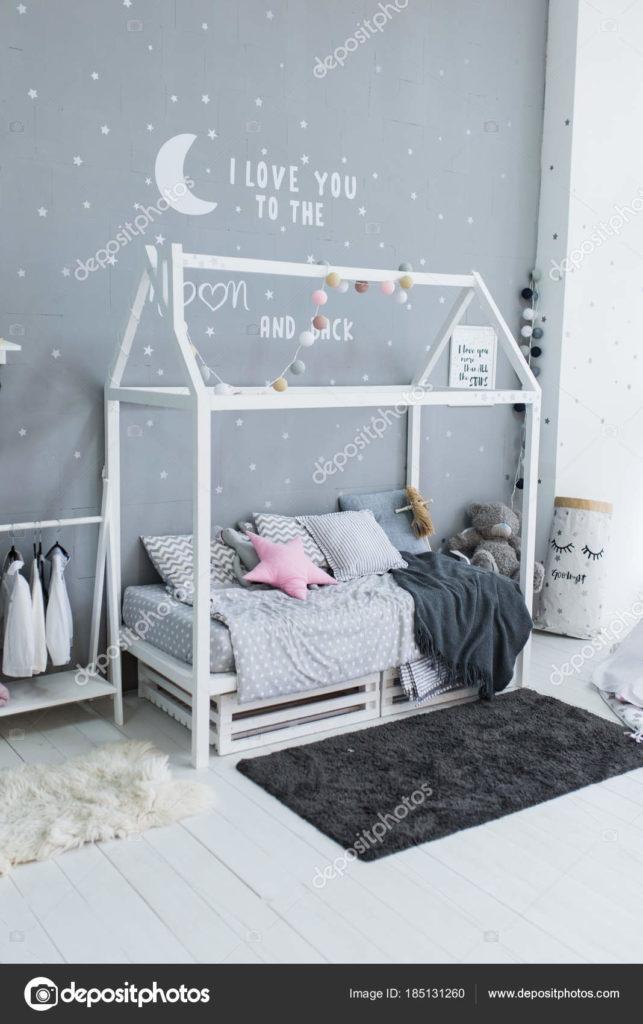 Los muebles para niños en el estilo escandinavo se verán geniales en el contexto de paredes grises claras.