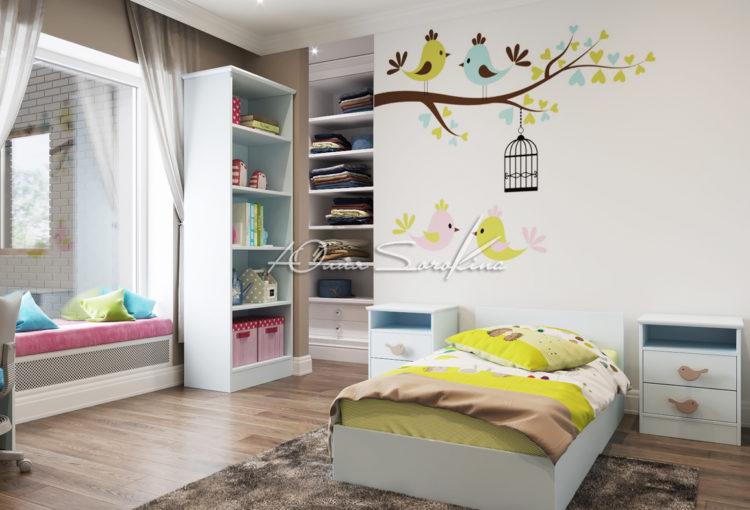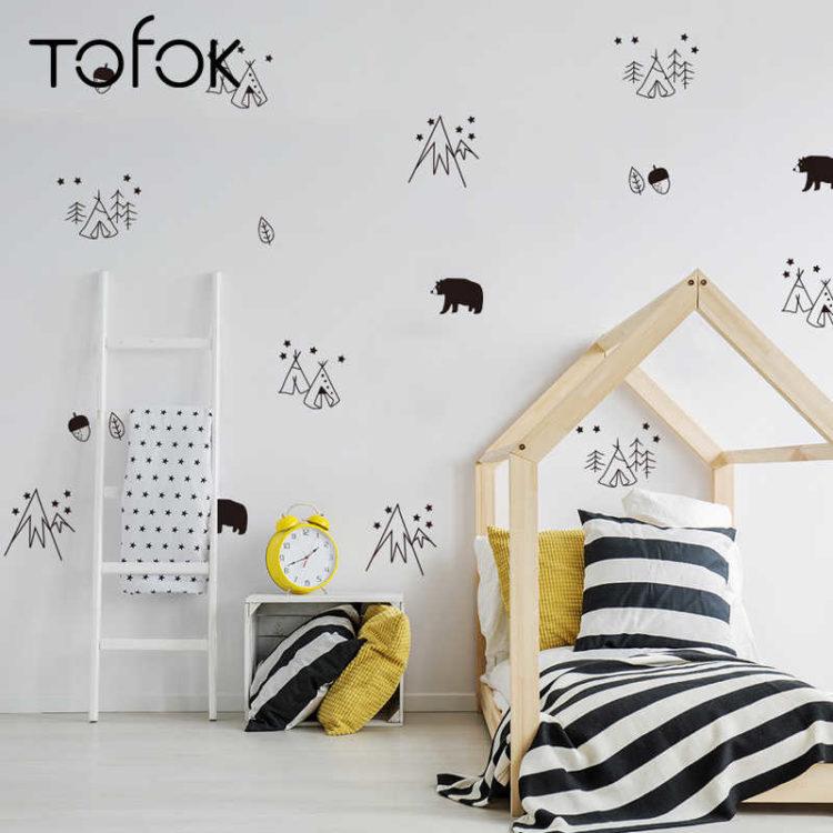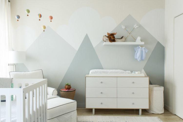 Una guardería de estilo escandinavo para un niño se verá genial si se diluye con tonos oscuros, por ejemplo, dibujando pájaros voladores en una de las paredes.