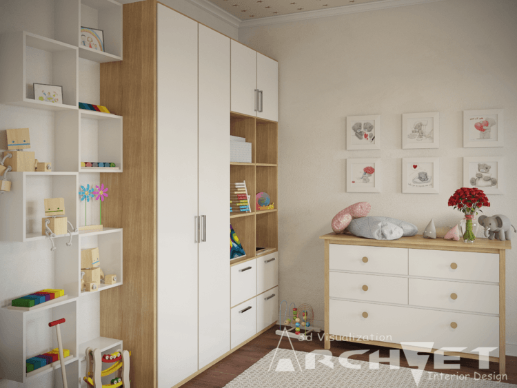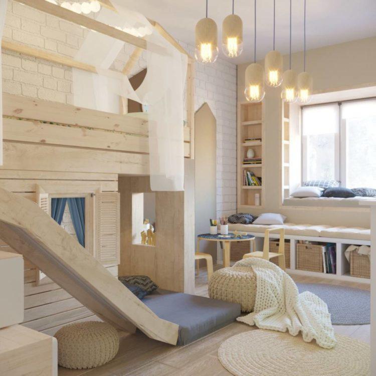 Los muebles para niños en el estilo escandinavo se verán geniales si prevalecen los tonos beige.