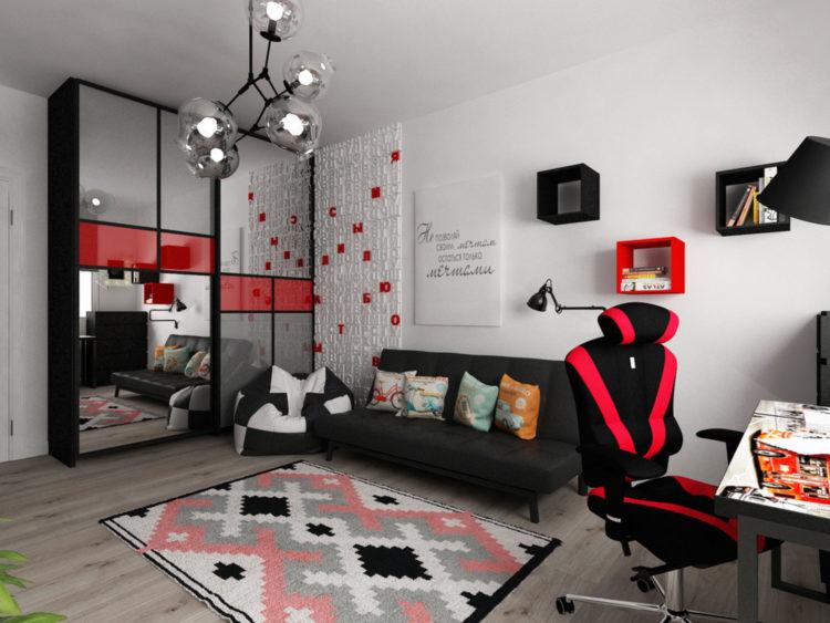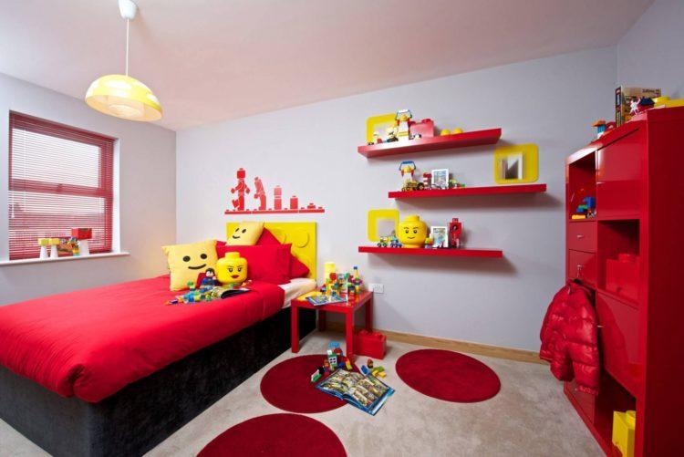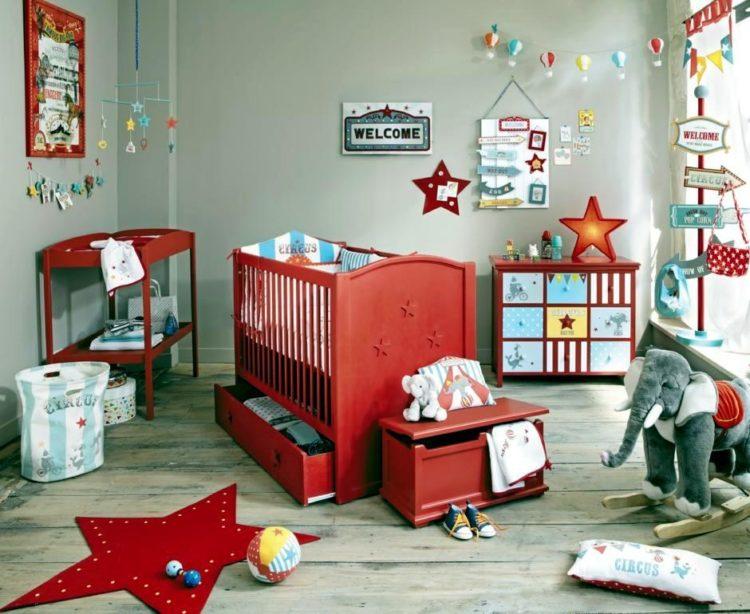 El estilo escandinavo en la guardería se puede diluir con un tinte rojo, especialmente si hace una habitación para dos niños con diferentes preferencias.