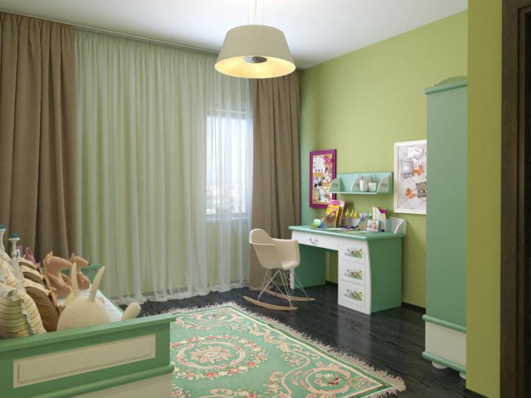 Como accesorio verde, puede usar las cortinas en la guardería en el estilo escandinavo, así como almohadas y algunos muebles tapizados.