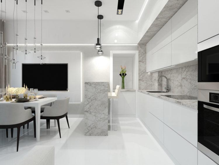 El color blanco es un color verdaderamente real, que posee propiedades únicas. Los diseños de apartamentos hechos en este color se combinan perfectamente con una decoración variada, complementan el estilo interior general y crean los acentos necesarios en la habitación. Se pueden realizar muchas ideas hermosas y exitosas haciendo reparaciones en el apartamento: el diseño interior de fotos debería ayudarlo.
