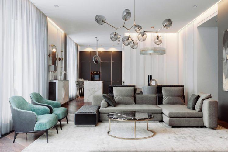 El color gris lacónico creará una base de color ideal en la habitación, se ve neutral y noble al mismo tiempo. Se puede combinar con casi cualquier tono: brillante o pastel, profundo o tocador.El diseño de los apartamentos (las salas fotográficas deberían ayudarlo) en tonos grises ayudará a que la casa sea elegante y, al mismo tiempo, práctica.