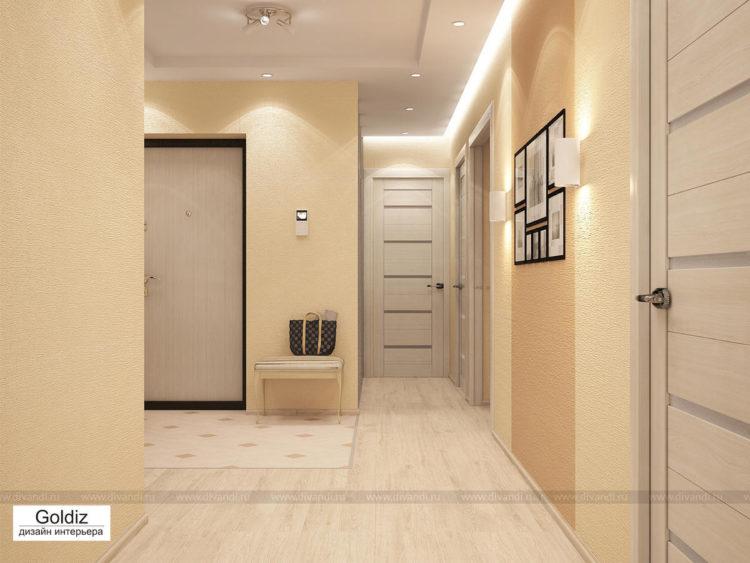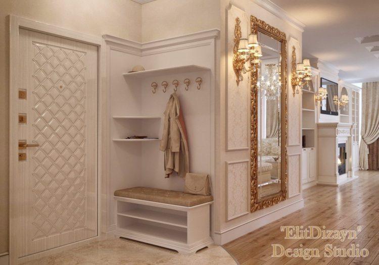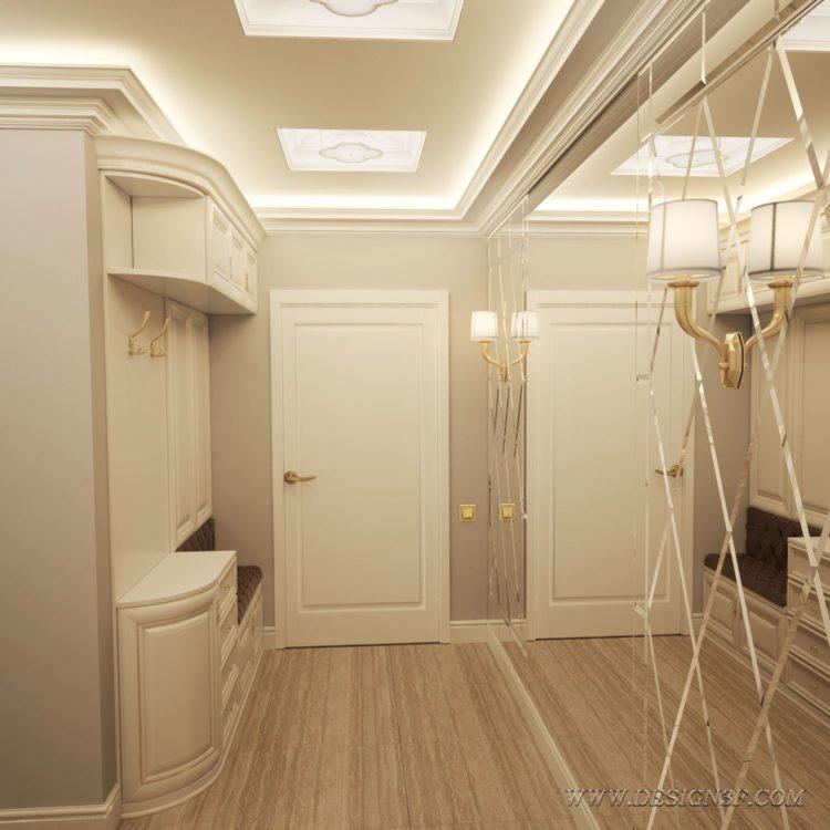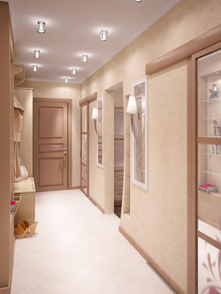 El pasillo tierno de color beige (el diseño de 2018 en la foto a continuación) desde el umbral brinda a los hogares y a los huéspedes calidez y comodidad en el hogar. La arena, la leche, el beige y otros tonos pastel cálidos hacen que la habitación sea más clara. Al hacer un pasillo largo y estrecho (diseño de la foto en el apartamento 2018) es importante tener en cuenta el diseño, organizar racionalmente los muebles, elegir una buena iluminación y combinar correctamente el color del piso, las paredes y el techo.Las principales desventajas de un pequeño pasillo son superadas para que todos los que ingresen en él se sientan dignos.