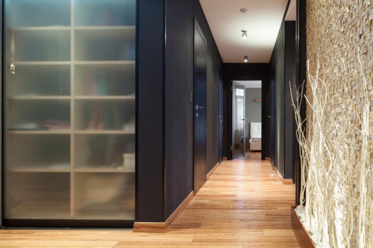 Corredor en diseño oscuro