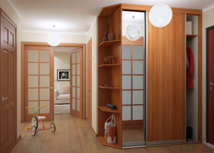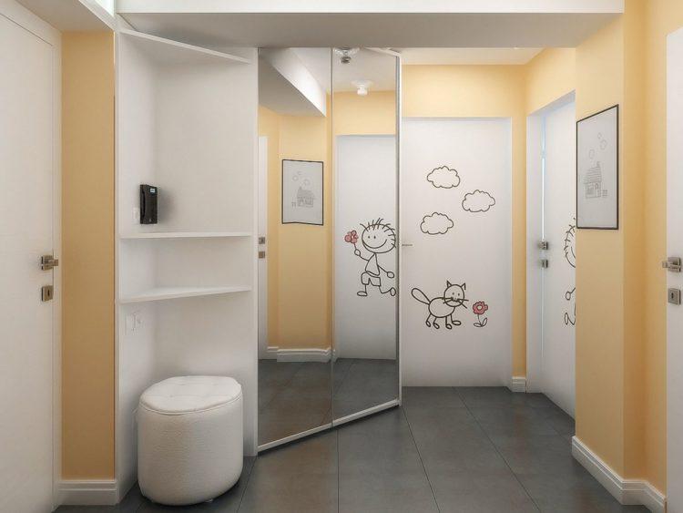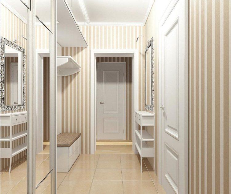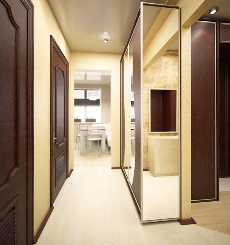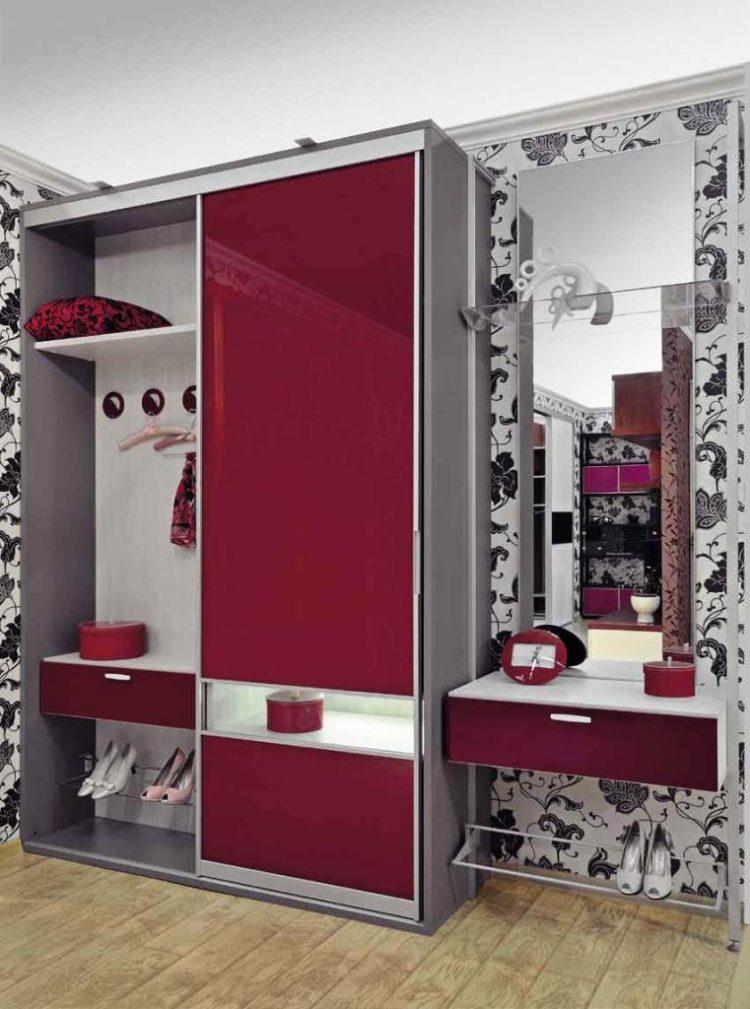 Es importante recordar que el interior de un pequeño pasillo debe diluirse solo con muebles hermosos. Hoy no es difícil pedir no solo el tono deseado de los estantes y las puertas, sino también un dibujo a su gusto. Debido al fondo de pantalla y al espejo, puede expandir visualmente el espacio. El diseño del pasillo 2018 prevé el uso de la tecnología de integración de muebles en un pasillo de tamaño pequeño.