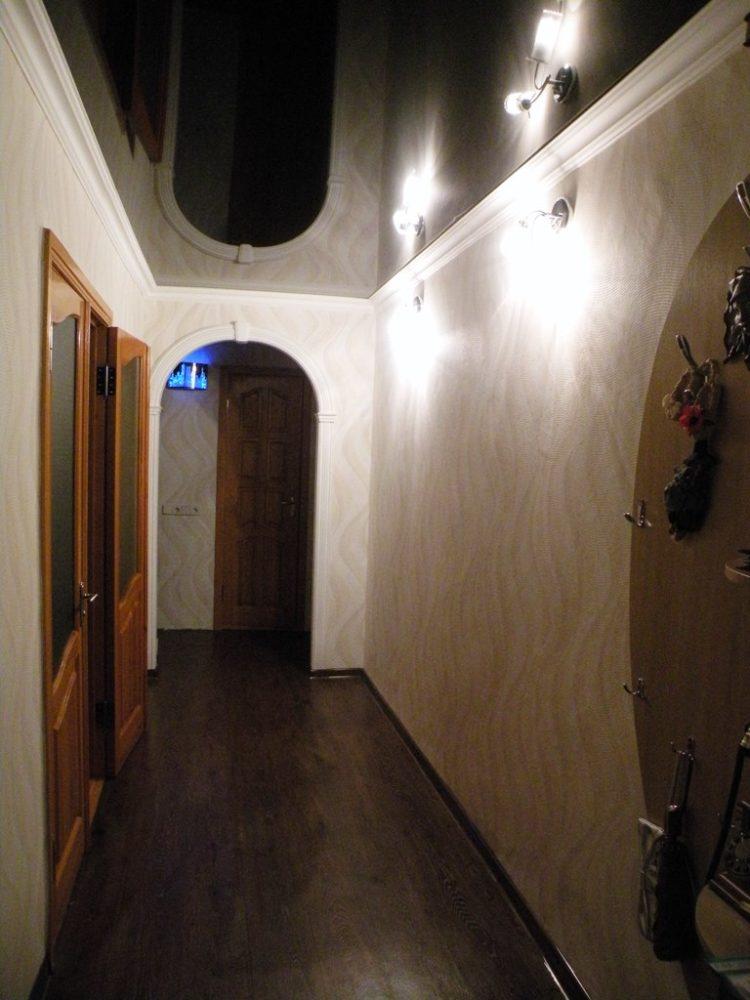 El diseño del pequeño pasillo estrecho (foto de 2018) en colores brillantes es capaz de hacerlo visualmente más espacioso, luminoso y cómodo. Por esta razón, una paleta de tonos delicados es muy popular. La elección de los materiales de acabado adecuados resuelve completamente el problema de las paredes sucias. Por ejemplo, los papeles pintados de vinilo lavables facilitan el mantenimiento de la limpieza y el orden de la habitación. En habitaciones grandes y altas, puede usar techos tensados, el corredor (foto de 2018) en este caso se verá muy moderno.