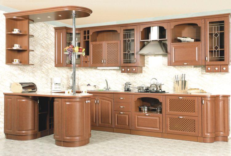 Hay juegos de cocina con barra de bar de madera. Pueden ser de diferentes colores y formas. Con esto, las fotos a continuación lo ayudarán a resolverlo.
