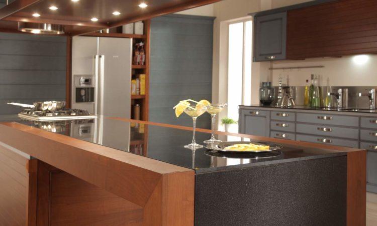 El cielo o el color verde mar llenará su cocina de frescura, si se coloca en esos colores, la barra y la superficie de trabajo.