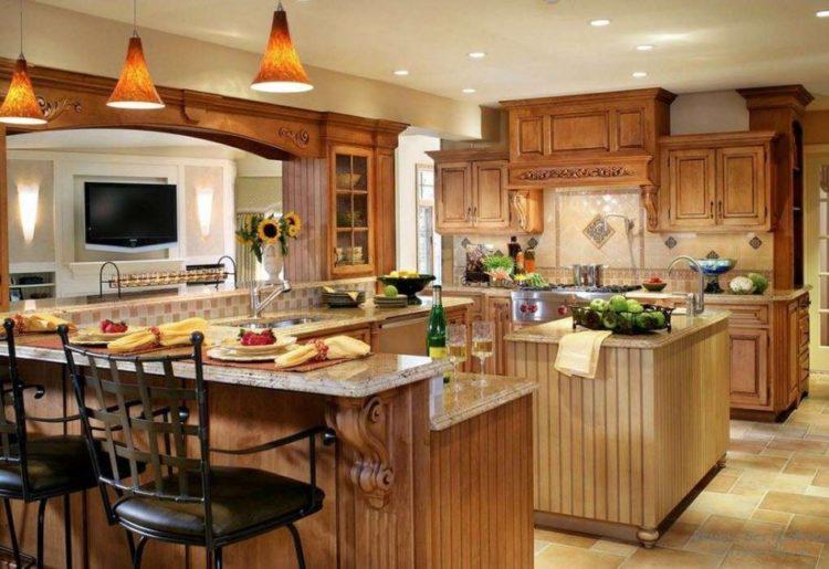 Para los amantes de la belleza, será interesante ver el diseño de la cocina con una barra (las fotos se presentan a continuación), que está hecha de mármol.Si elige un diseño de este tipo, asegúrese de que las paredes de su cocina no tengan dibujos coloridos.