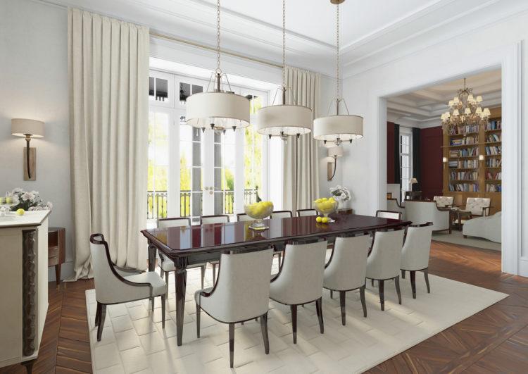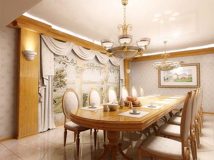 Absolutamente todos conocen la increíble propiedad de una paleta de luces para aumentar visualmente el espacio. Así que siéntete libre de usar tonos claros si tienes un pequeño comedor. No descuides el vidrio y las superficies brillantes, porque también ayudan a que la habitación parezca más grande.