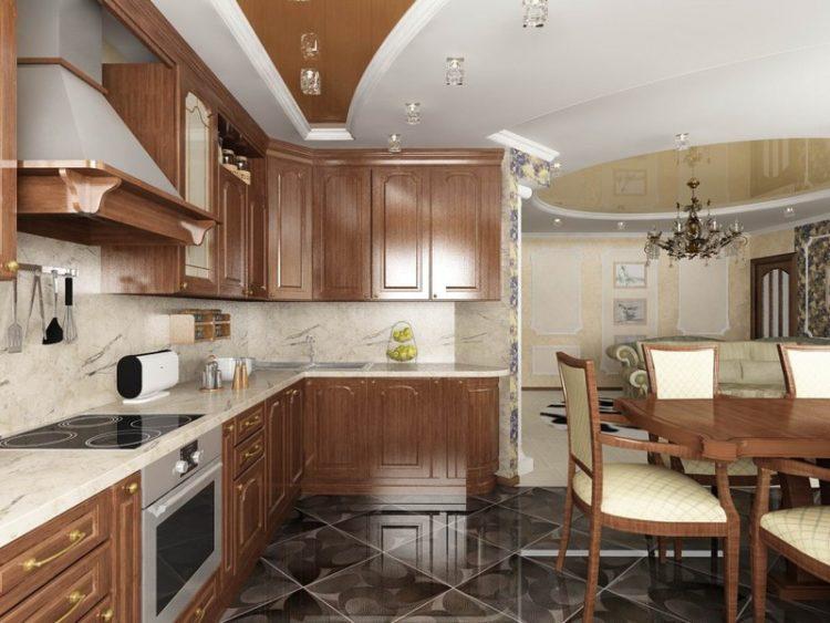 El color marrón es muy bueno para las cocinas, ya que es universal, práctico, tiene un buen efecto en la psique y está ampliamente distribuido en forma de materiales naturales. Sin embargo, no olvide que los tonos marrones también pueden "robar" el espacio visual de la cocina-comedor y, por lo tanto, utilizarlo con moderación y donde el diseño de la cocina del comedor lo permita.