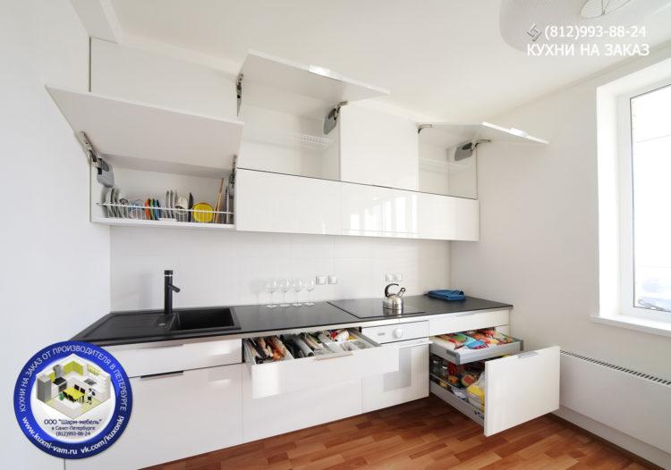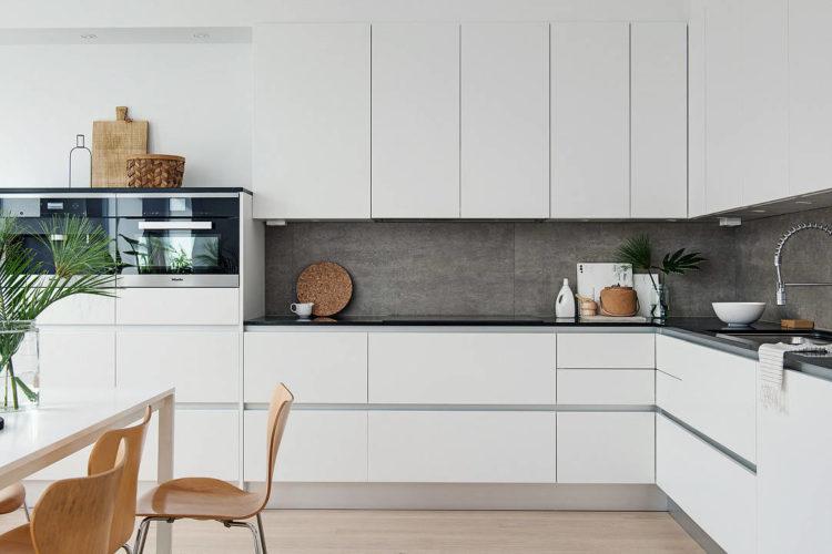 La unidad de cocina de color blanco es una buena solución para cocinas pequeñas y grandes. Las cocinas de tendencia 2018, 2019 están hechas en blanco y complementadas con elementos brillantes.