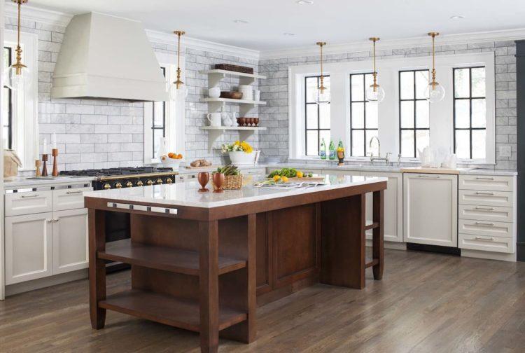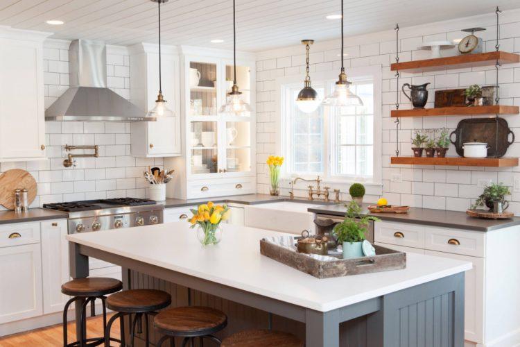 Un hermoso interior siempre comienza con una buena idea. Si tiene que planificar el diseño de la cocina, buscar inspiración, prestar atención a las cocinas colgantes en un diseño inusual 2019, puede ver fotos en diferentes colores a continuación. Los estantes colgantes agregan espacio de almacenamiento pero no abarrotan el espacio.