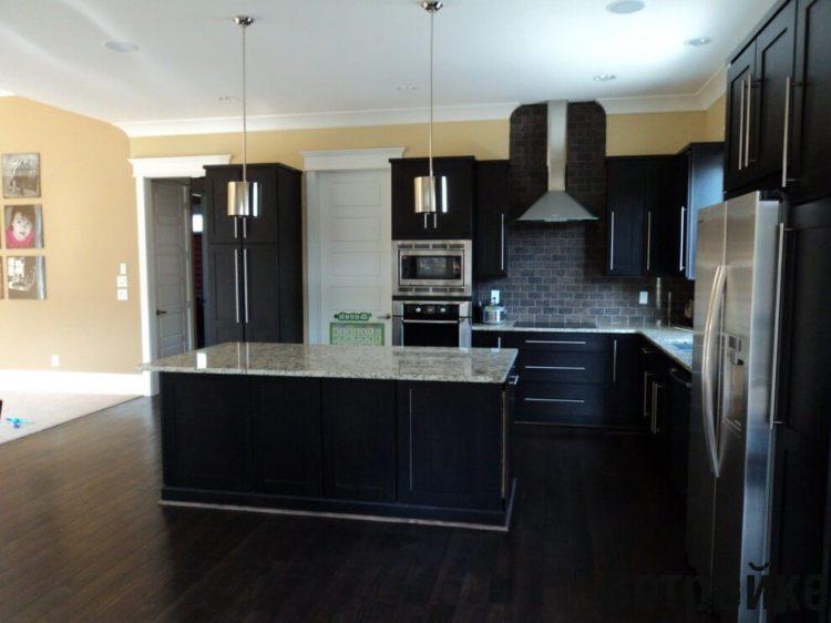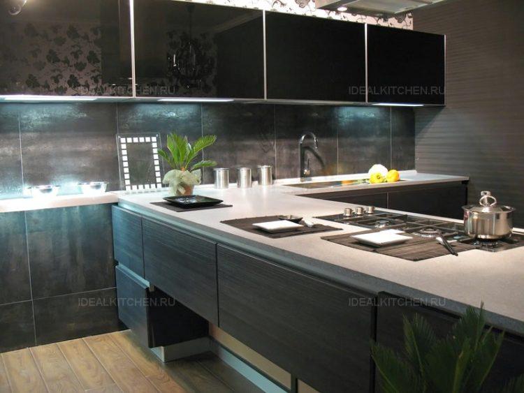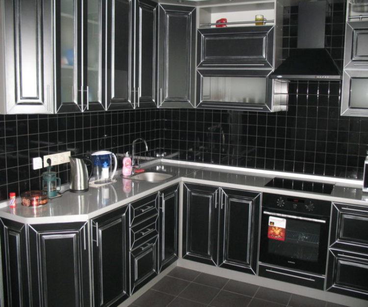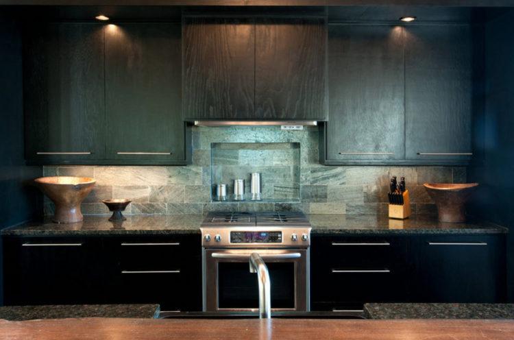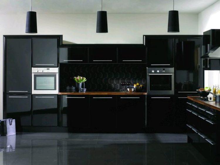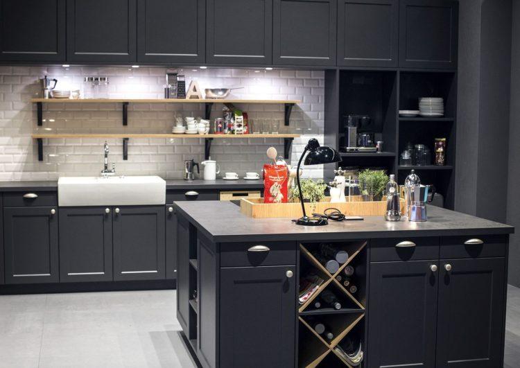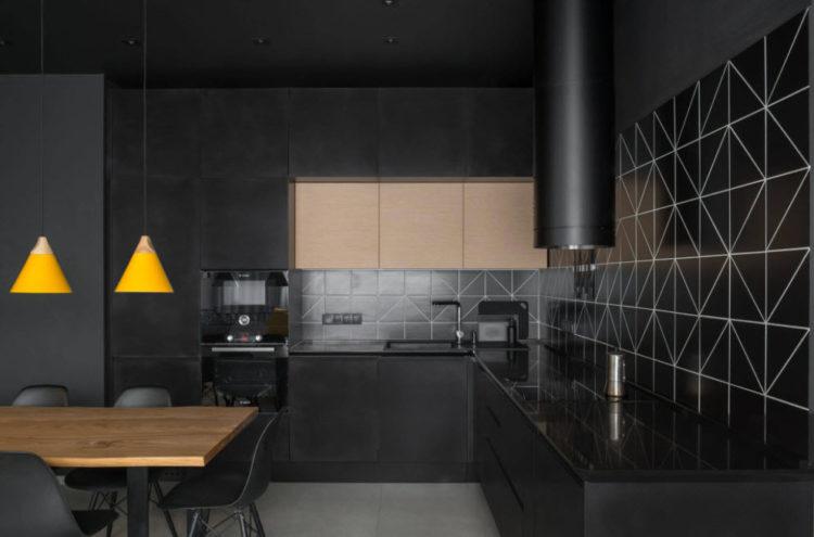 Las reparaciones de tendencia de las cocinas se hacen en negro. Se ve muy bien en habitaciones grandes.