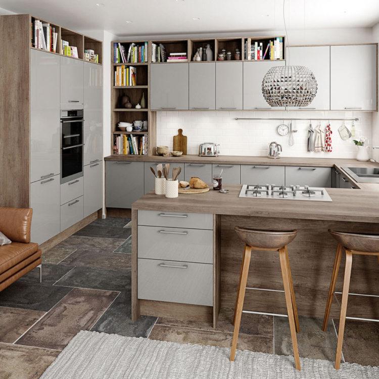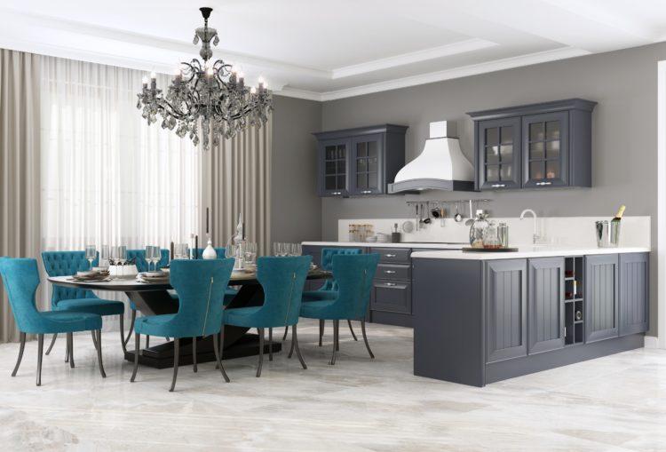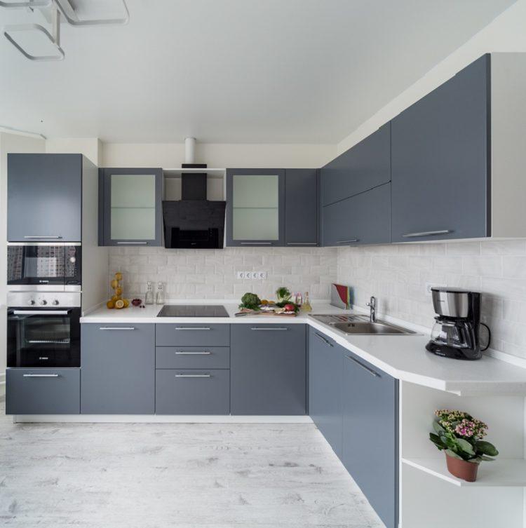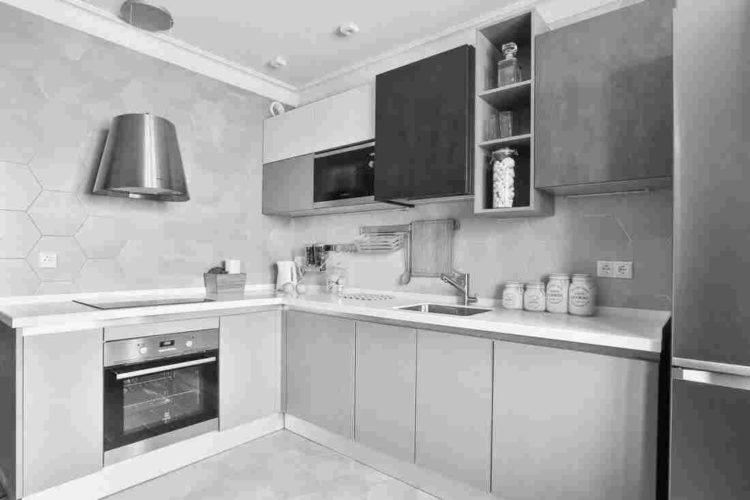 Nuevas tendencias en la reparación de cocinas. El nuevo diseño de cocina para 2019 en gris se verá interesante e inusual.