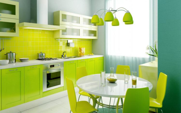 Las tendencias de moda en la reparación propagan brillo y coraje. Las fachadas de los muebles están hechas en todos los tonos de verde.