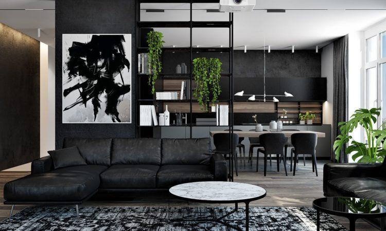 Los hermosos interiores de los apartamentos se pueden decorar incluso en colores negros. Recientemente, la gente usa cada vez más el color negro, por lo que sin duda tropezará con ejemplos similares en cualquier sitio de diseño en la sección "Noticias".