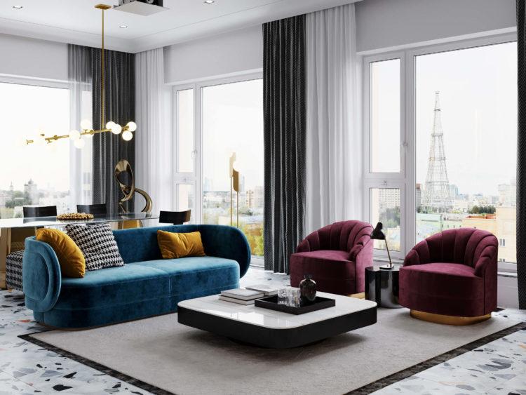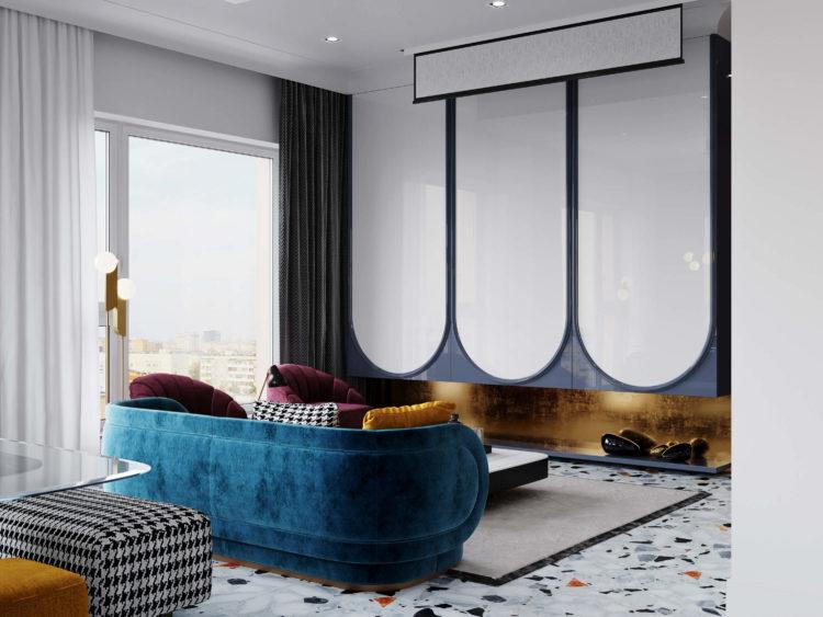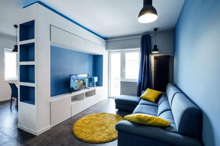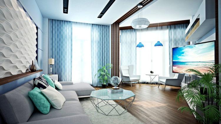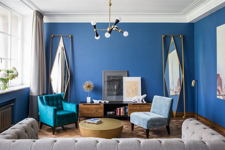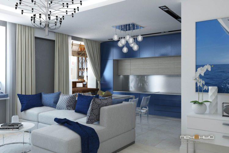 Puede encontrar fácilmente soluciones de diseño para decorar apartamentos con fotos y opciones de diseño en tonos de azul.