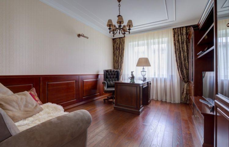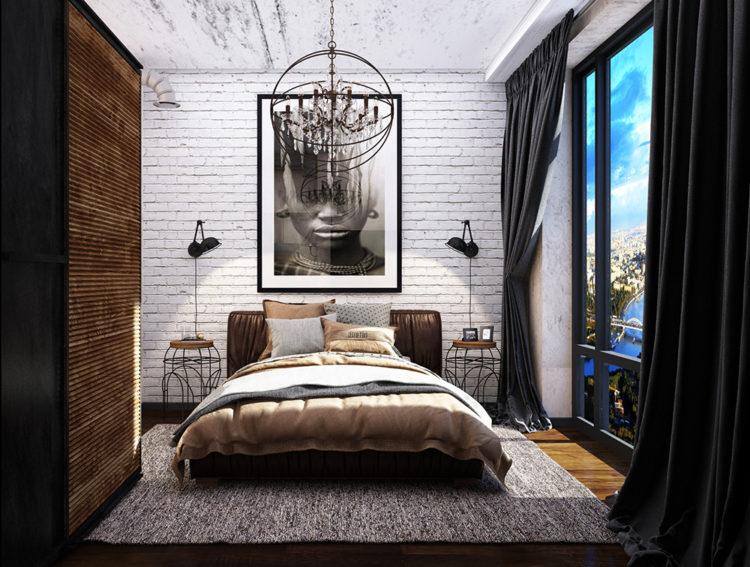 Por supuesto, una guardería en tonos marrones no es la mejor solución. Pero este color noble es perfecto para una sala de estar, estudio, biblioteca o incluso un dormitorio, como puede ver mirando el diseño de la foto del apartamento.