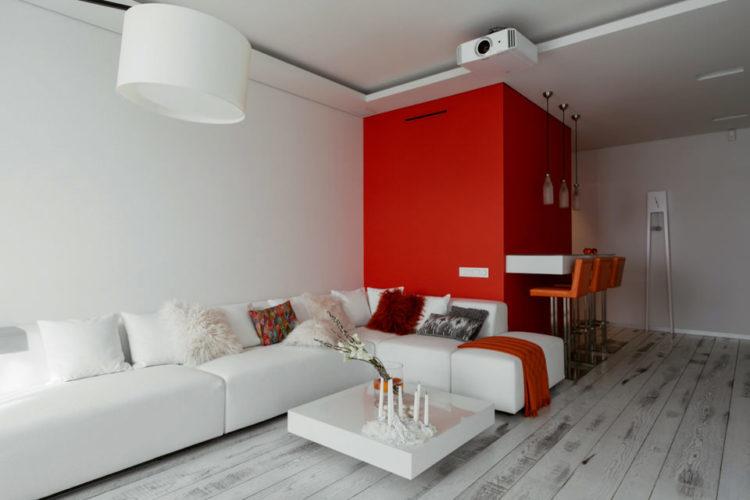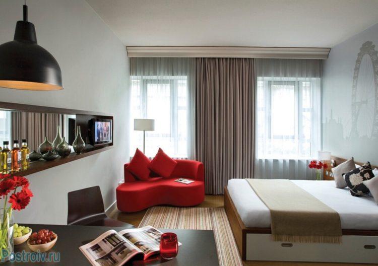 A menudo puedes toparte con una foto del diseño de los apartamentos en rojo.