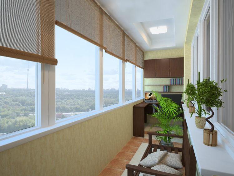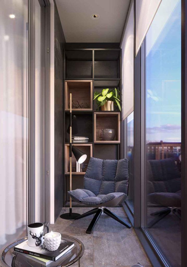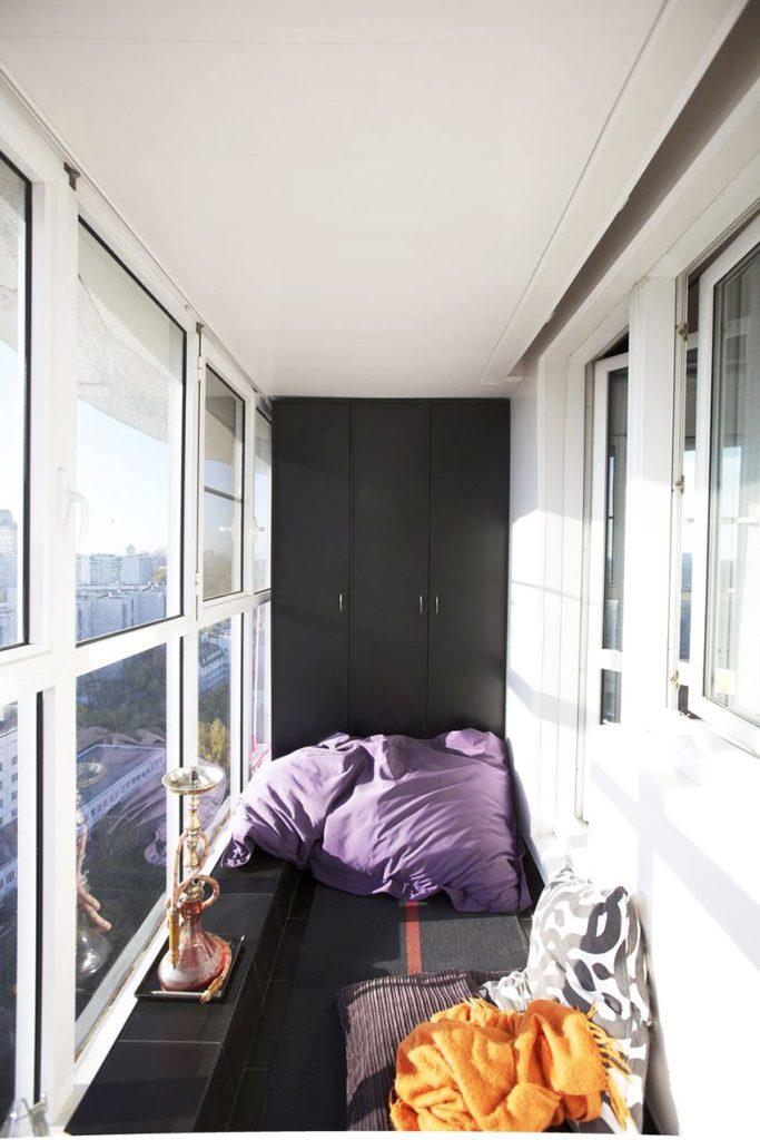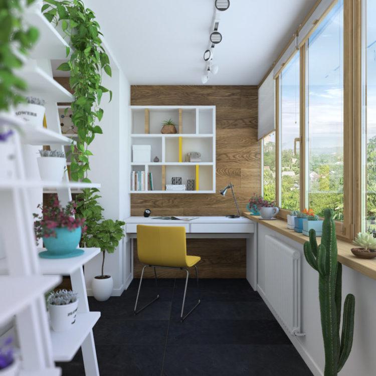 También puede organizar una biblioteca en casa allí. Asegúrese de poner redes en las ventanas para que no entren insectos en el apartamento o la casa. Las plantas coexisten bien en balcones y logias, por lo que se pueden colocar un par de cactus sin pretensiones. A continuación encontrará otras 100 ideas de diseño de logias o balcones que lo ayudarán a elegir.