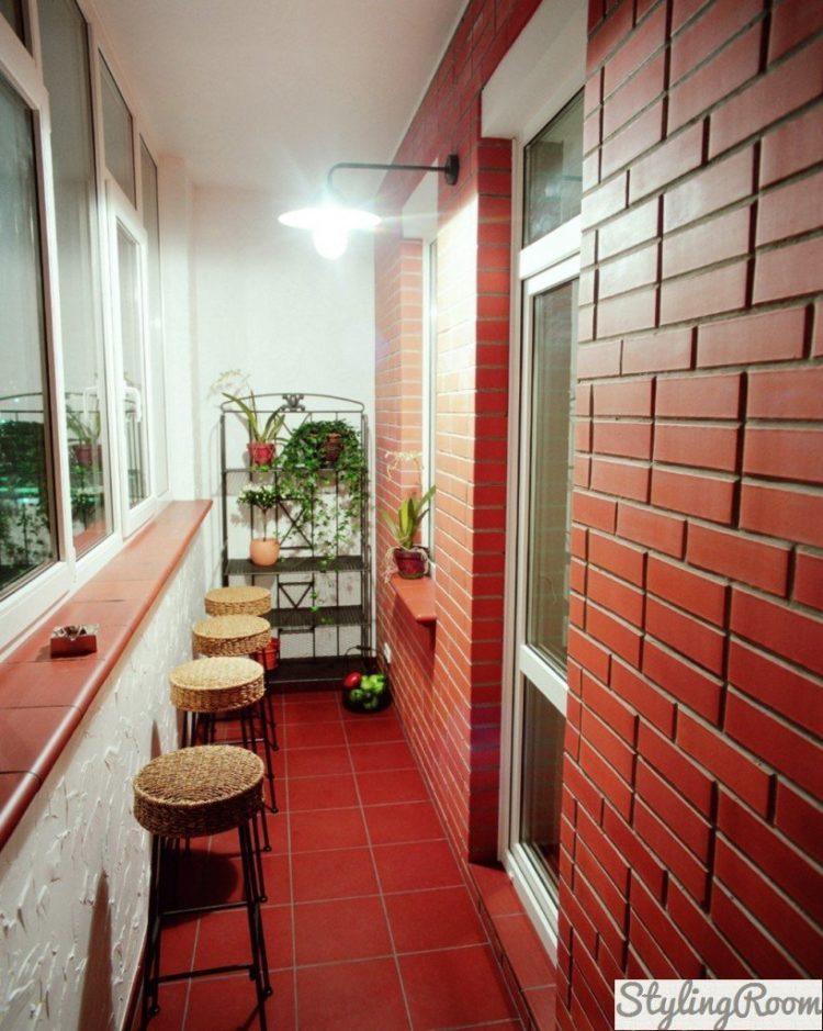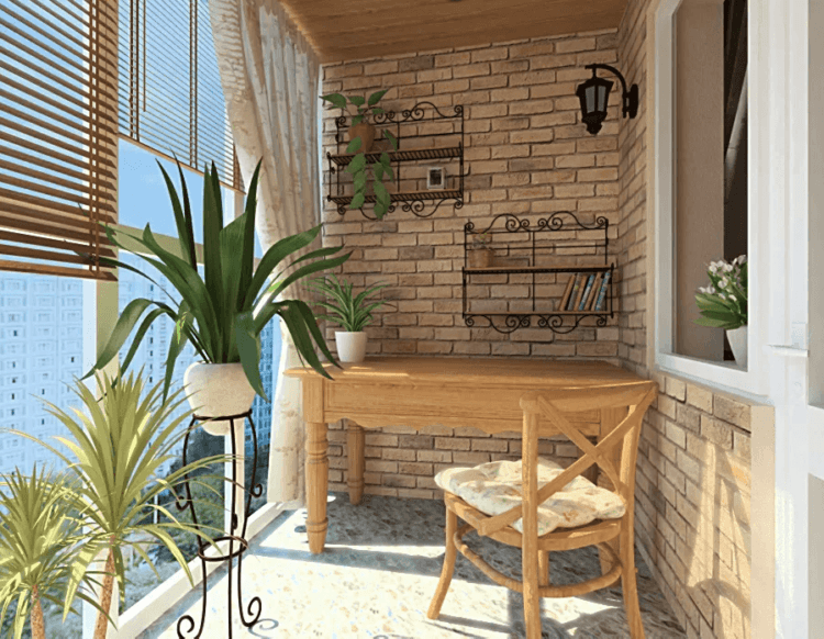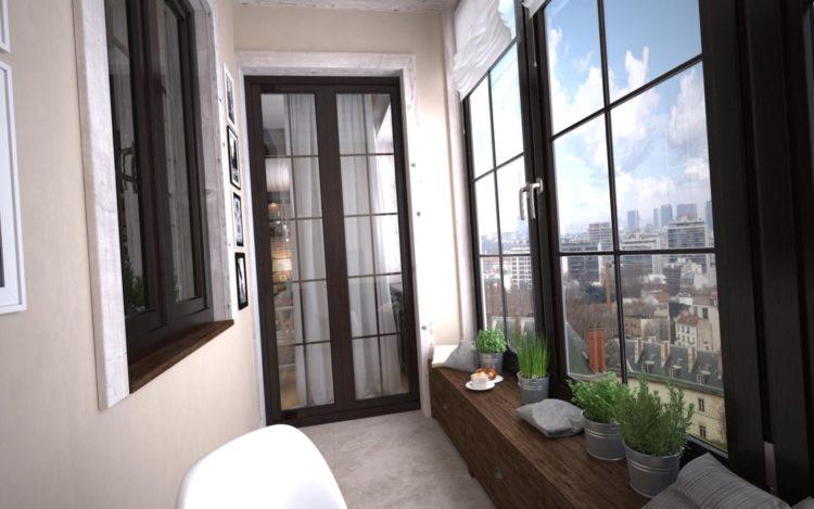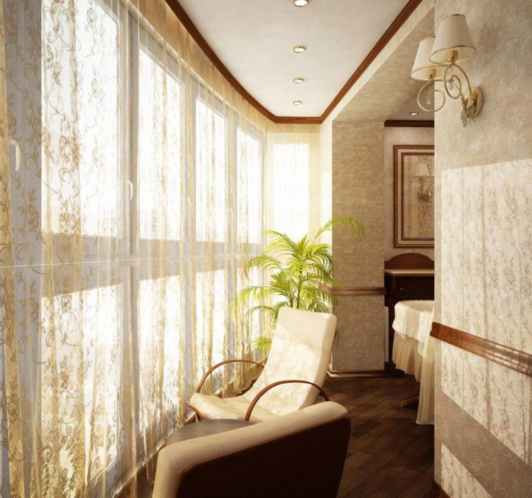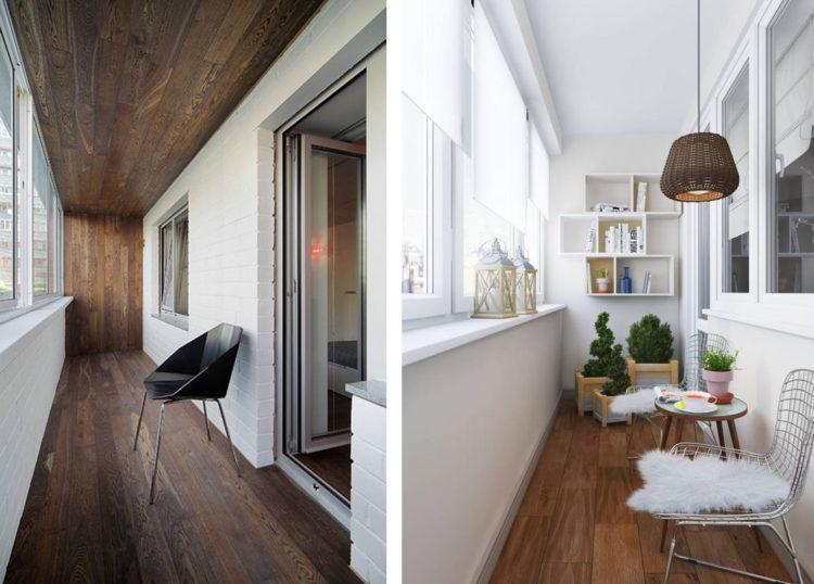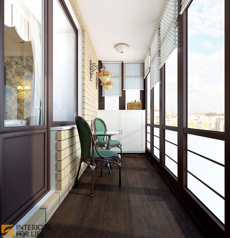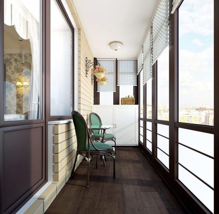 El interior de la logia o balcón a menudo se puede encontrar en tonos marrones. Muy a menudo, se eligen acabados de madera, especialmente si se trata de una logia (diseño y foto que puede ver a continuación).