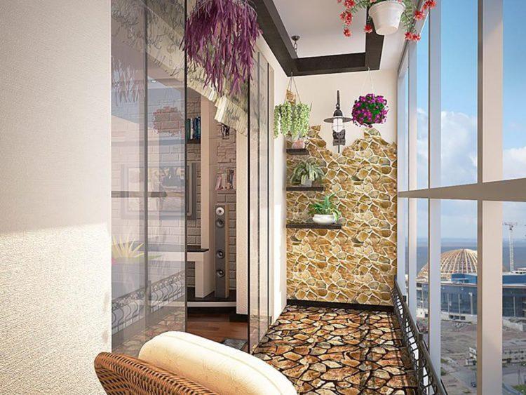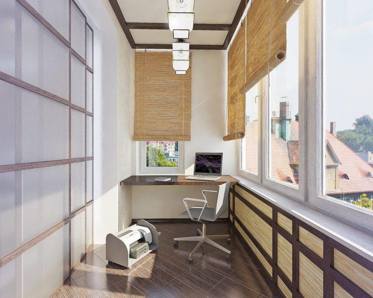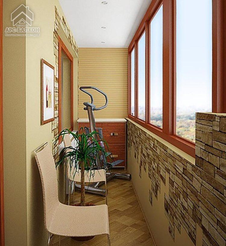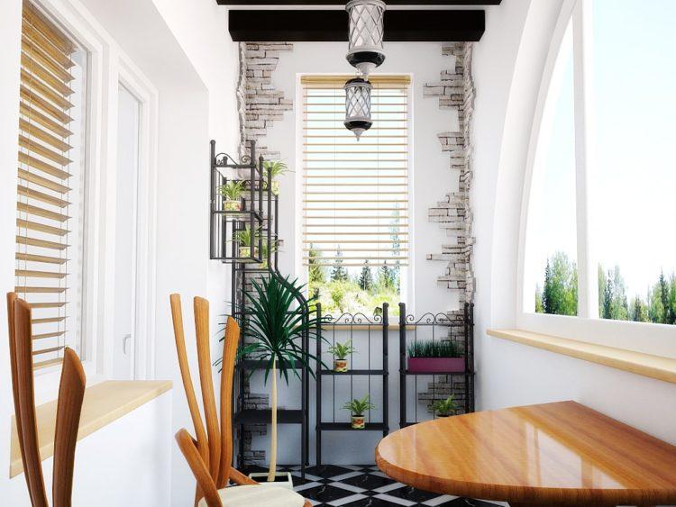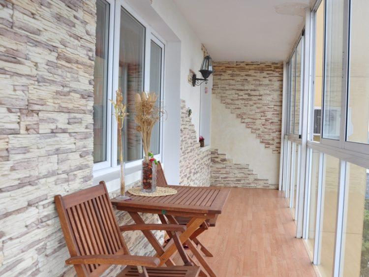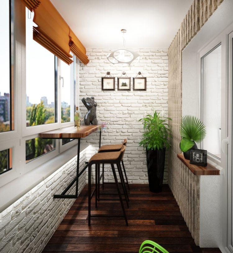 El interior de la logia o balcón a menudo se puede encontrar en tonos marrones. Muy a menudo, se eligen acabados de madera, especialmente si se trata de una logia (diseño y foto que puede ver a continuación).