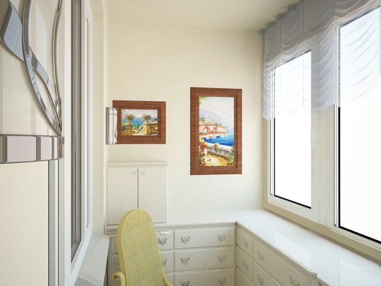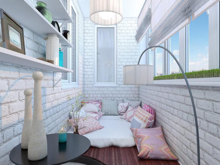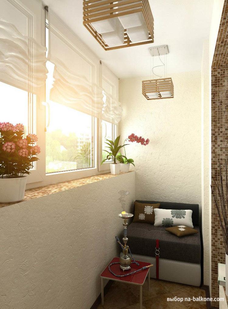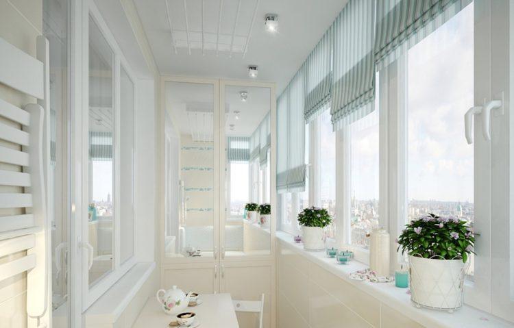 El acabado de balcones y logias (fotos, diseño y ejemplos, ver más abajo) en tonos claros se verá muy fresco y relevante. Si el balcón o la logia es de tamaño pequeño, los tonos claros ayudarán a expandir visualmente la habitación.