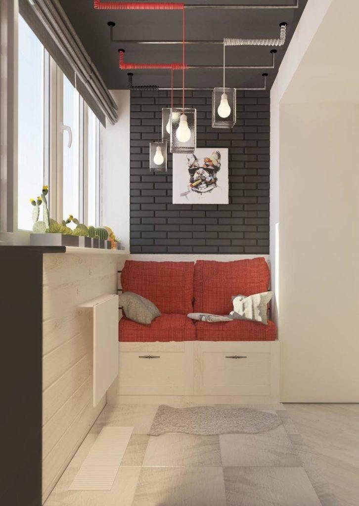 El diseño de la logia o balcón en negro se realiza con bastante frecuencia, pero no sin elementos interesantes. Puede usar colores contrastantes, como rojo, blanco o amarillo.