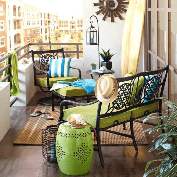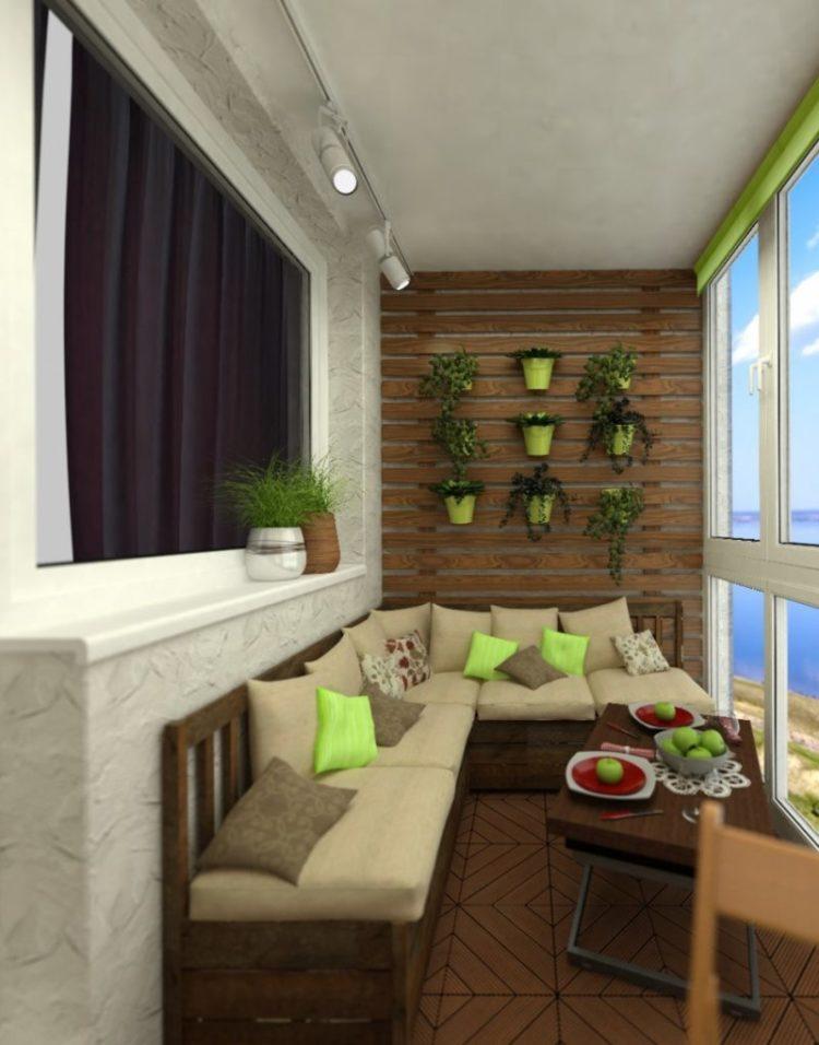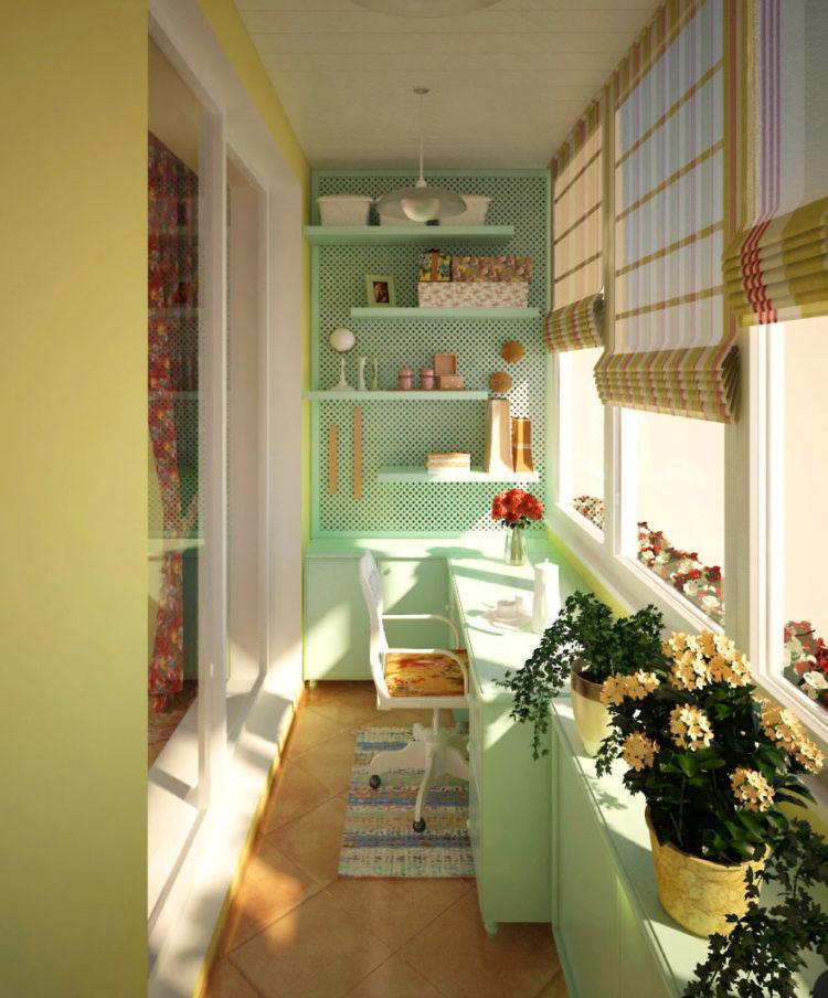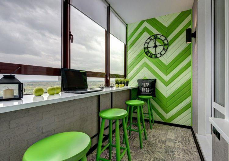 El diseño de balcones y logias (fotos, ideas modernas que encontrará a continuación) a menudo se ejecutan en colores verdes. Diferentes tonos de verde y azul se ven especialmente hermosos en combinación con una gran cantidad de flores y plantas en el balcón.