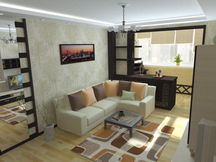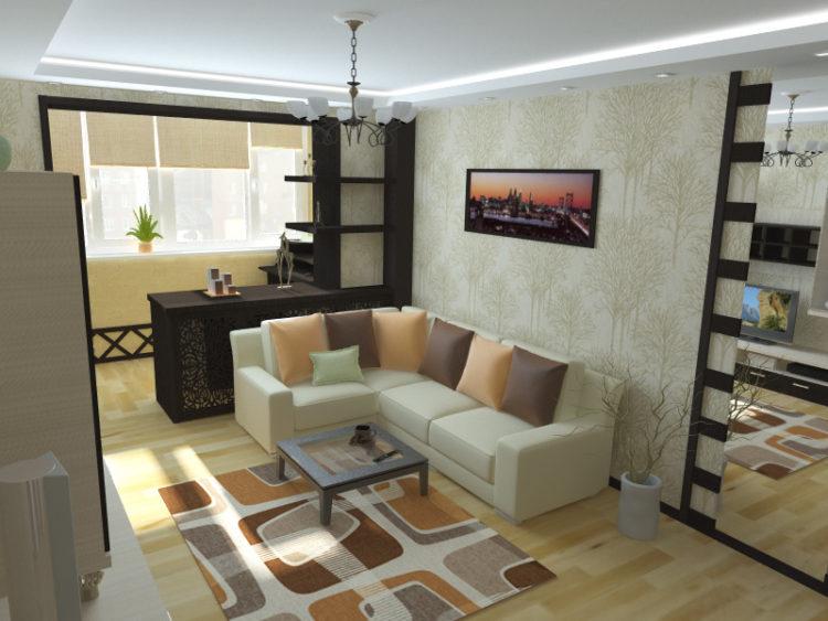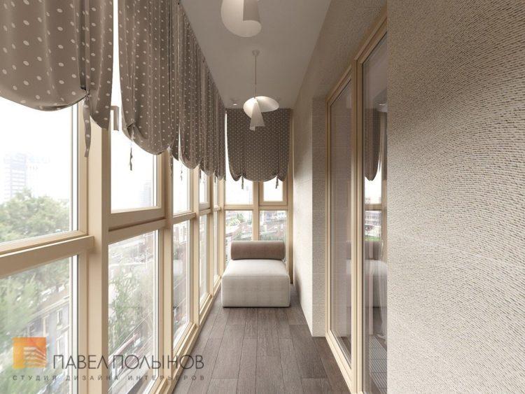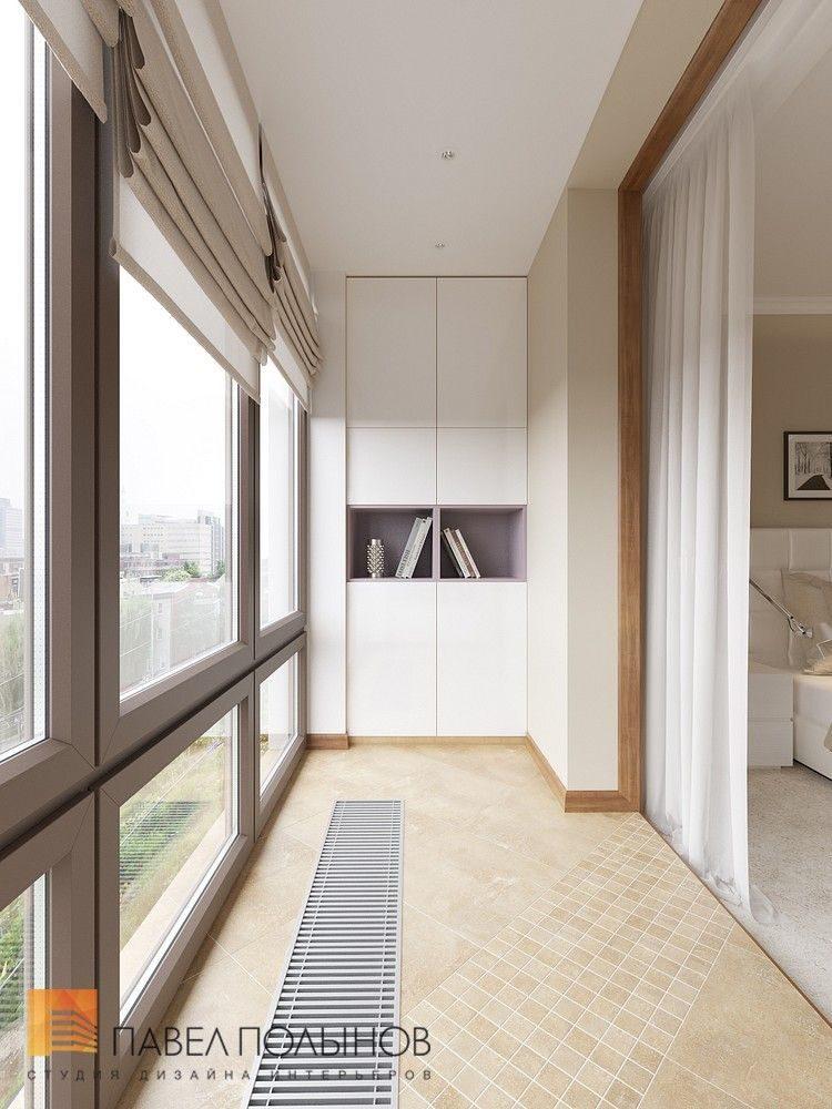 El diseño del balcón (ver foto a continuación) en color beige se verá muy bien si lo golpeas con tonos marrones. El interior de la logia en este color puede ser golpeado con colores brillantes y contrastantes, como frambuesa o rojo.