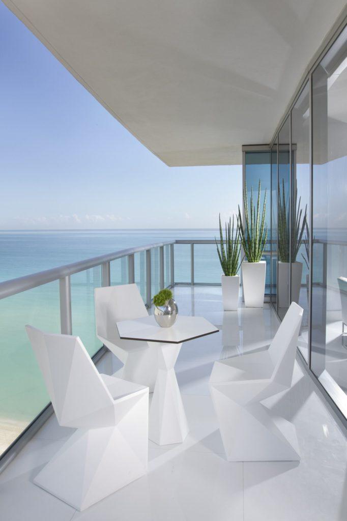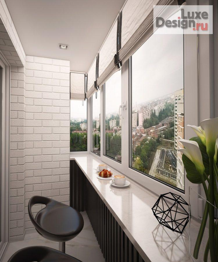 Hacer una logia o balcón en blanco se verá muy bien, especialmente si cuelgas cortinas blancas. Tal balcón (foto abajo) se verá bien con ventanas panorámicas.