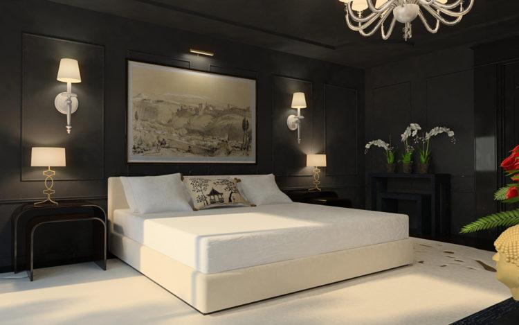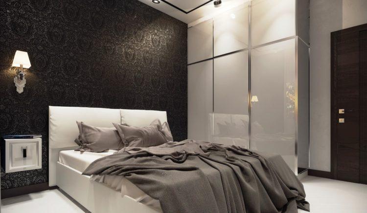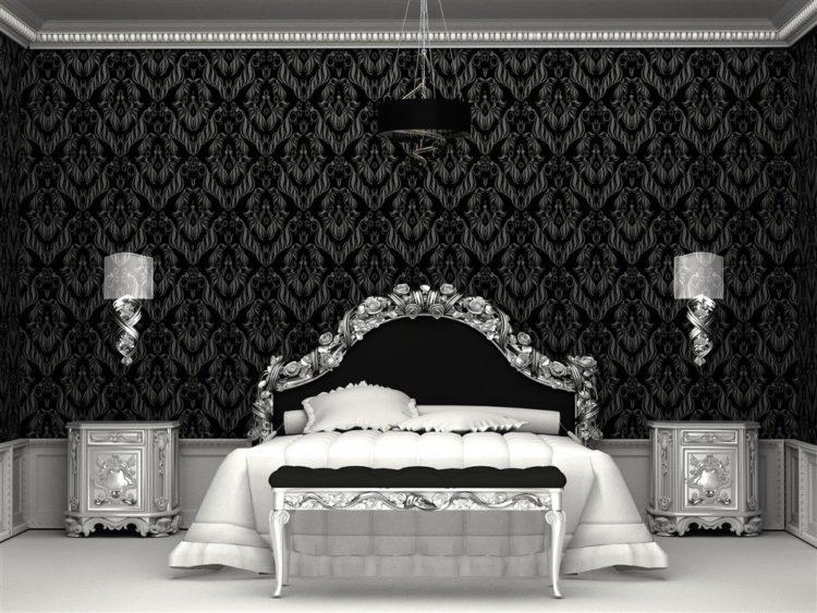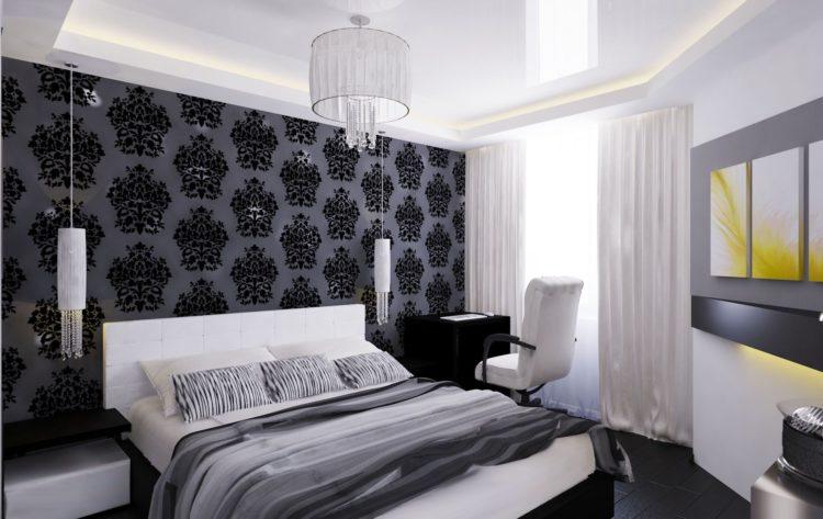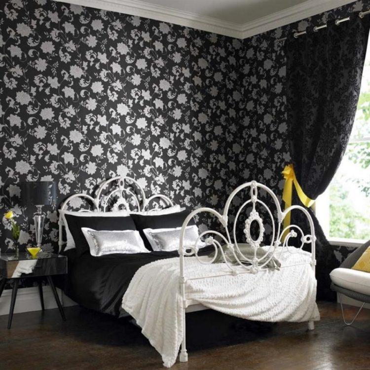 El diseño negro del papel tapiz para el dormitorio con la selección correcta de colores se convierte en un clásico elegante.El aspecto en blanco y negro, negro-beige u otra combinación de papel tapiz en el dormitorio (vea la foto de la idea a continuación) está bien demostrado en nuestro catálogo.