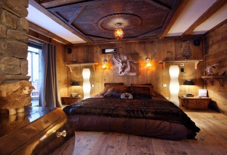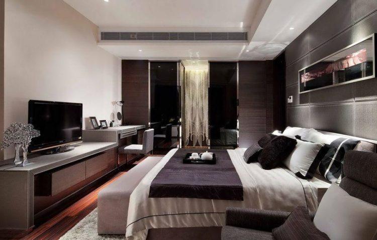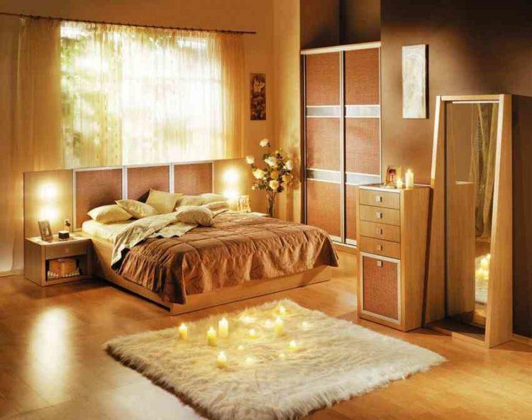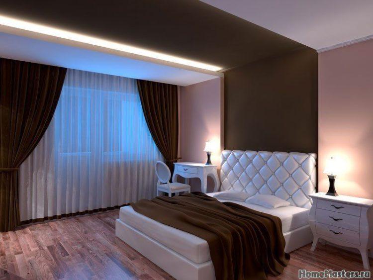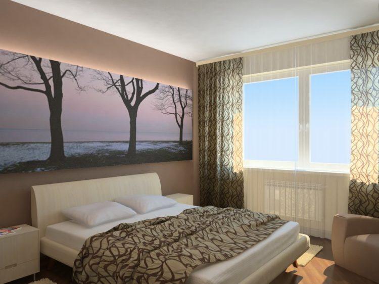 El rico color marrón en el dormitorio crea comodidad y comodidad. Combina papel tapiz marrón claro y oscuro para el dormitorio