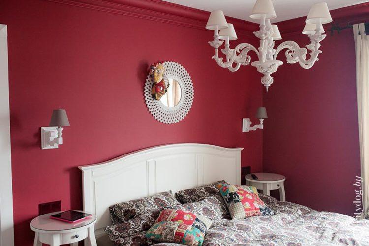 Al elegir fondos de pantalla rojos para una habitación pequeña, deténgase en tonos claros. El papel tapiz rojo apagado en la habitación (vea el diseño interior para una foto del diseño interior) llena la habitación de energía. Se aconseja combinarlos con otros colores.