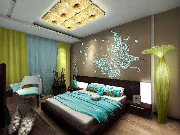 El papel pintado moderno brillante para el dormitorio en una paleta brillante hace que la habitación sea visualmente más espaciosa y mate para brindar comodidad. El diseño moderno de la habitación permite dibujos monocromos precisos, gráficos, abstracciones.