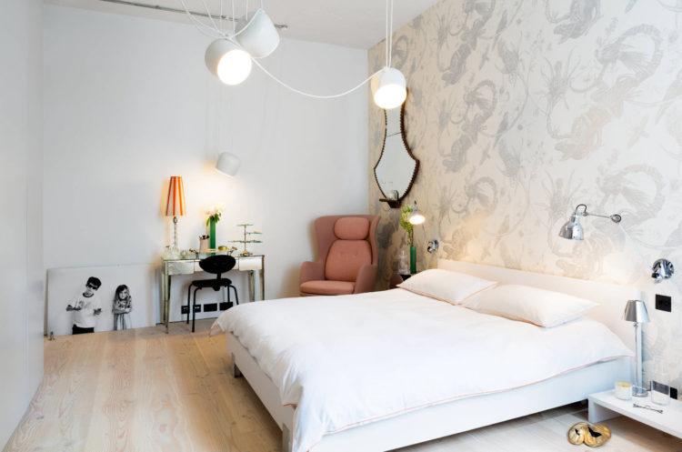 al contenido ↑Papel tapiz brillante en el diseño de la habitación.