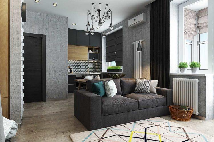 El diseño de un Khrushchev de una habitación de 30 metros cuadrados en negro es raro. Por lo general, se combina con tonos claros, y luego la composición general se ve increíblemente hermosa y rica.