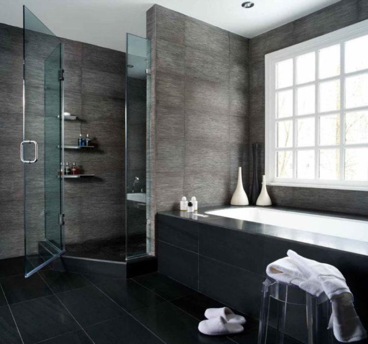 La confianza y la categorización conlleva un hermoso diseño de baños en colores oscuros.