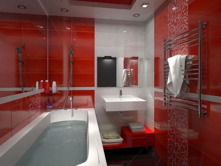 Cualquier idea para un baño en rojo está condenada al éxito. Este color puede ser el principal o complementar con éxito los tonos claros u oscuros.