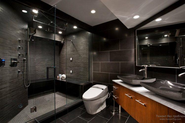 Color elegante para espacios realmente grandes, mientras que los baños pequeños (diseño, fotos en el apartamento) se llenan mejor con colores brillantes.