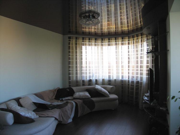 El marrón tiene una gran variedad de tonos, desde chocolate con leche claro hasta tonos oscuros de la corteza de un árbol de hoja caduca. Se usa muy a menudo en la decoración de paredes y pisos para decorar varias habitaciones, incluida la sala en un apartamento de 18 metros cuadrados. Los expertos encuentran excelentes soluciones de diseño que combinan tonos marrones de todos los elementos de la habitación con muebles, decoración y accesorios. Buenas ideas para el interior marrón para el salón en el apartamento de 18 metros cuadrados. m: