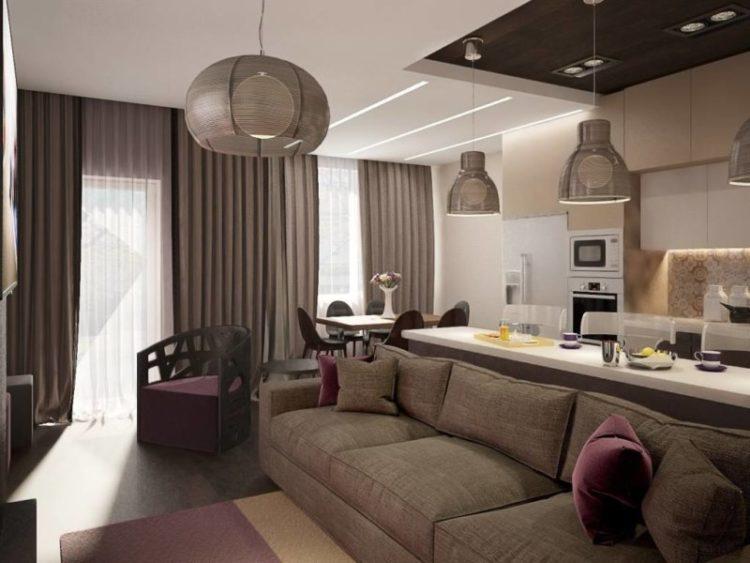 El interior de la sala de estar de 18 metros en un apartamento de dos habitaciones se puede decorar en varios estilos.