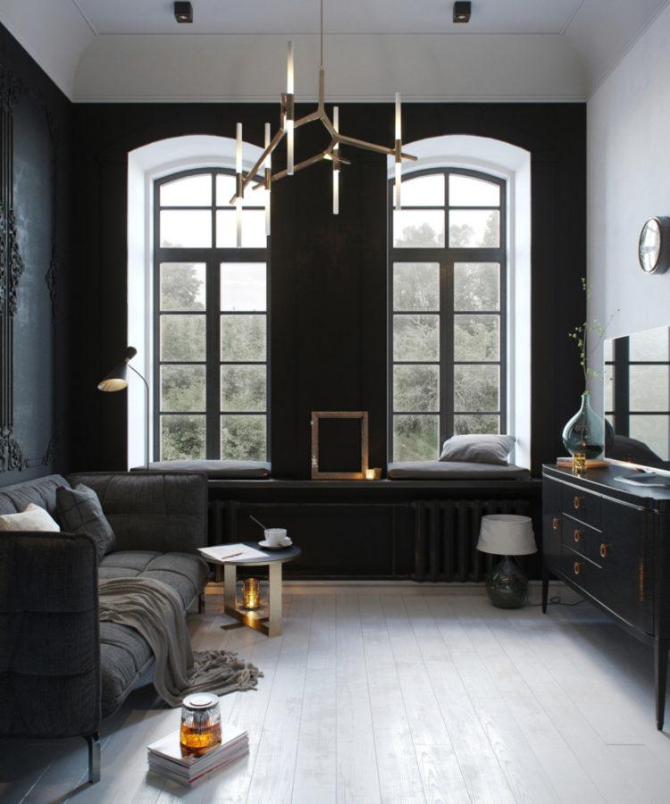 El diseño de las casas puede contener la mayoría de los colores oscuros, pero luego debe considerar cuidadosamente la iluminación para que su hogar no sea sombrío y no se parezca a un antiguo castillo. Puede ver fotos interesantes del interior en colores oscuros a continuación.