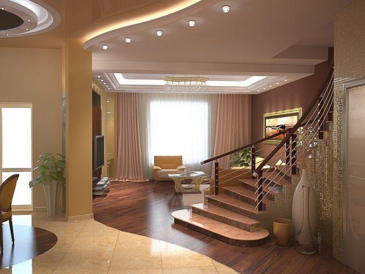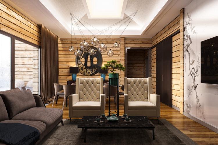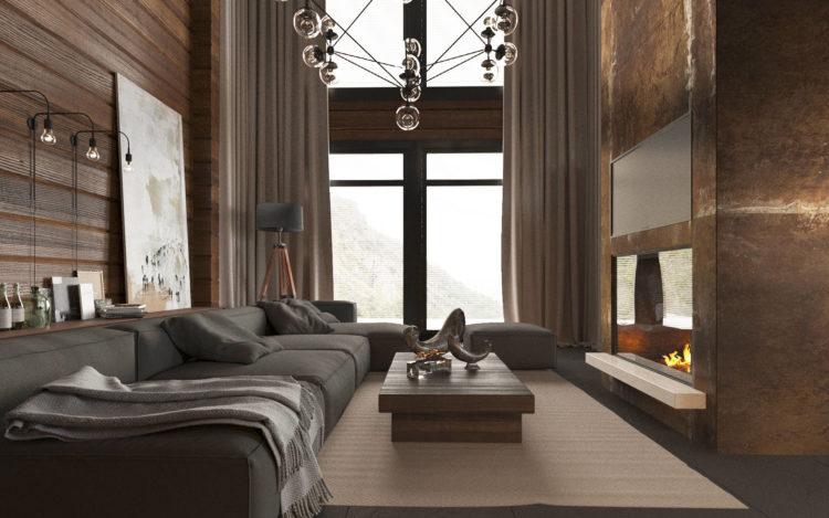 Pensando en el diseño de las casas, puede elegir el color marrón para todas las habitaciones. El marrón, como el beige, se puede combinar con éxito con muchos colores y crear interesantes interiores de casas de campo.