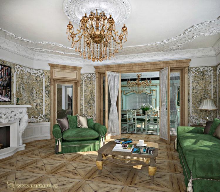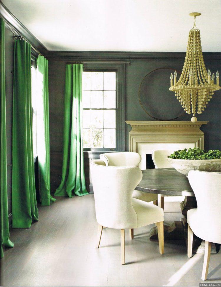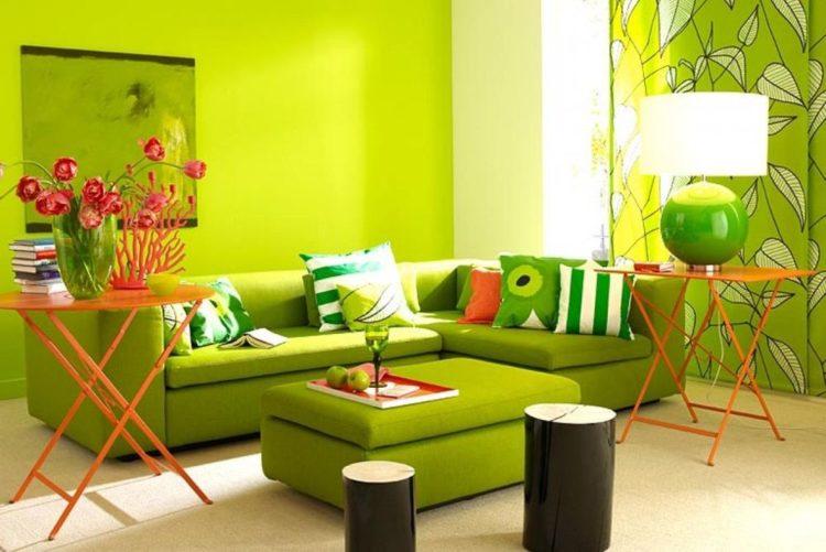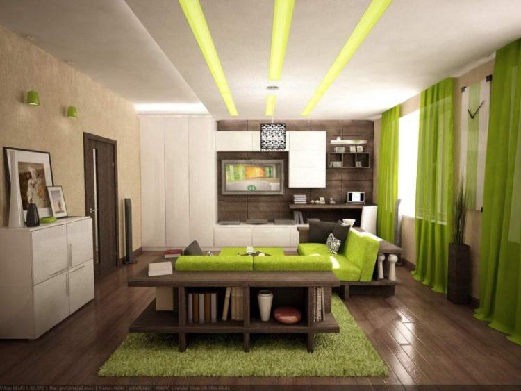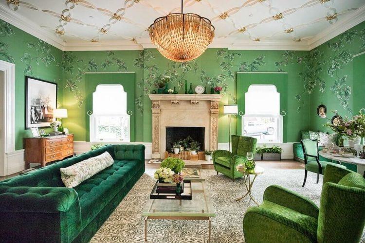 Los interiores modernos de las casas se pueden hacer en colores brillantes, como, por ejemplo, el verde. Al mismo tiempo, el interior y el diseño deben pensarse bien para no exagerar con la vegetación.