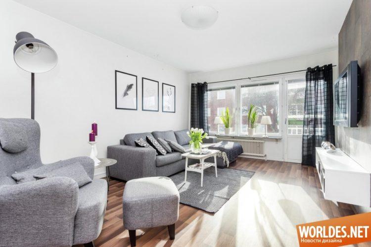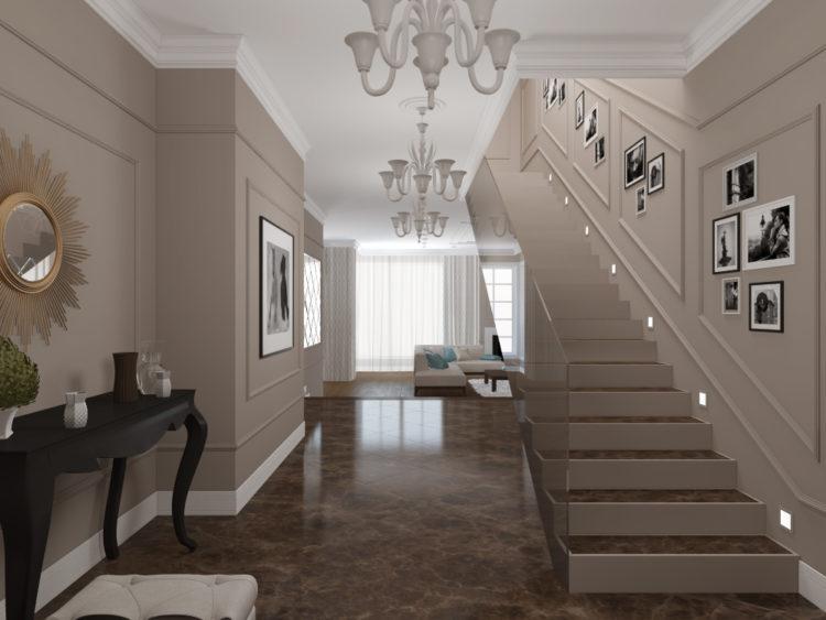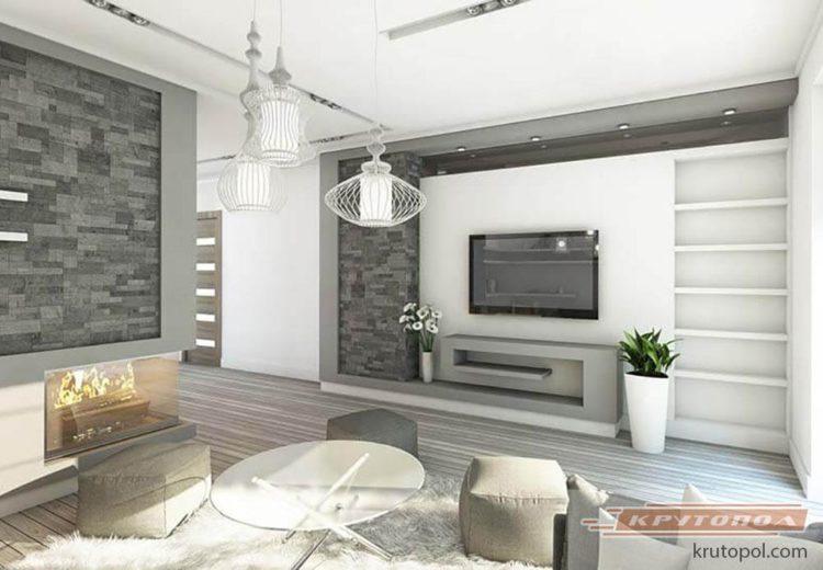 Muchos diseños de casas de moda están hechos en gris, porque de esta manera es posible acercarse lo más posible al estilo loft recientemente popular. El interior de la casa de campo se verá bien tanto en tonos oscuros como grises claros.