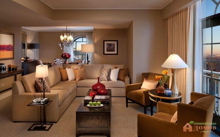 Hay ideas interiores interesantes para el hogar, en el que todas las habitaciones tienen un color beige. Es más fácil de usar en el interior, ya que siempre se combina con éxito con muchos colores y es ideal para muebles hechos de materiales naturales.